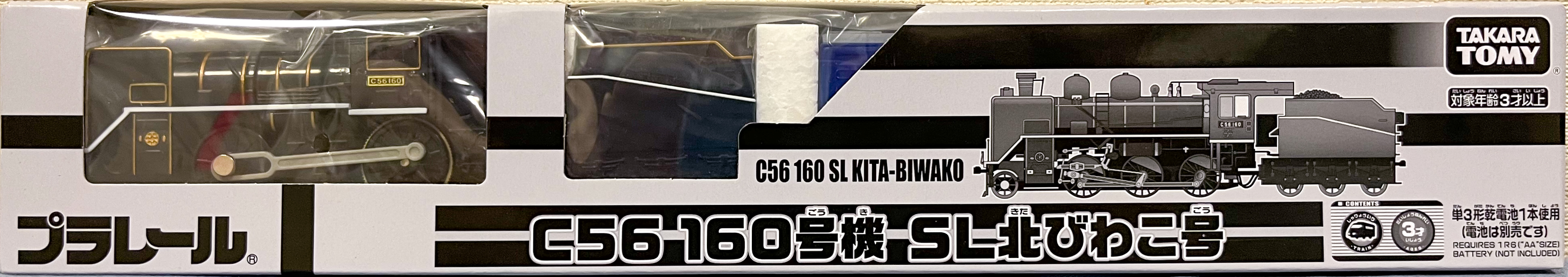 なお、この「スピードカーゴ」にてプラレール博限定品では初めてとなる10代目箱が登場しました。今までは新メカの車両も9代目箱で発売していたので「新形態の登場」だとごく一部で話題になりましたが、2025年には一転、実在の車両に逆戻り。2021年に絶版となった「C56 160号機 SL北びわこ号」が再び登場しました。「S-38」の時と同じくテールマークステッカー付きです。そしてまた9代目箱に戻ってしまいました。プラレール博限定品の箱採用基準がいまいち分かりません。ちなみに、北びわこ号は通常品絶版後のプラレール博2023にて、何故か売店で発売されているところが確認されています。