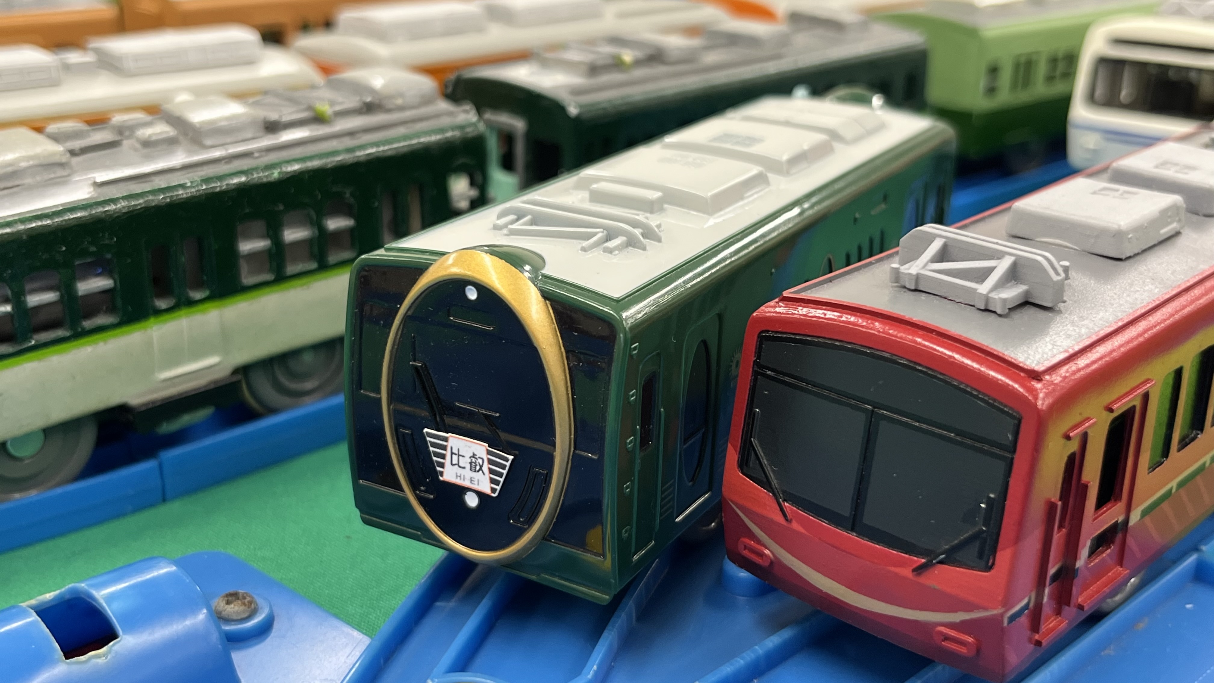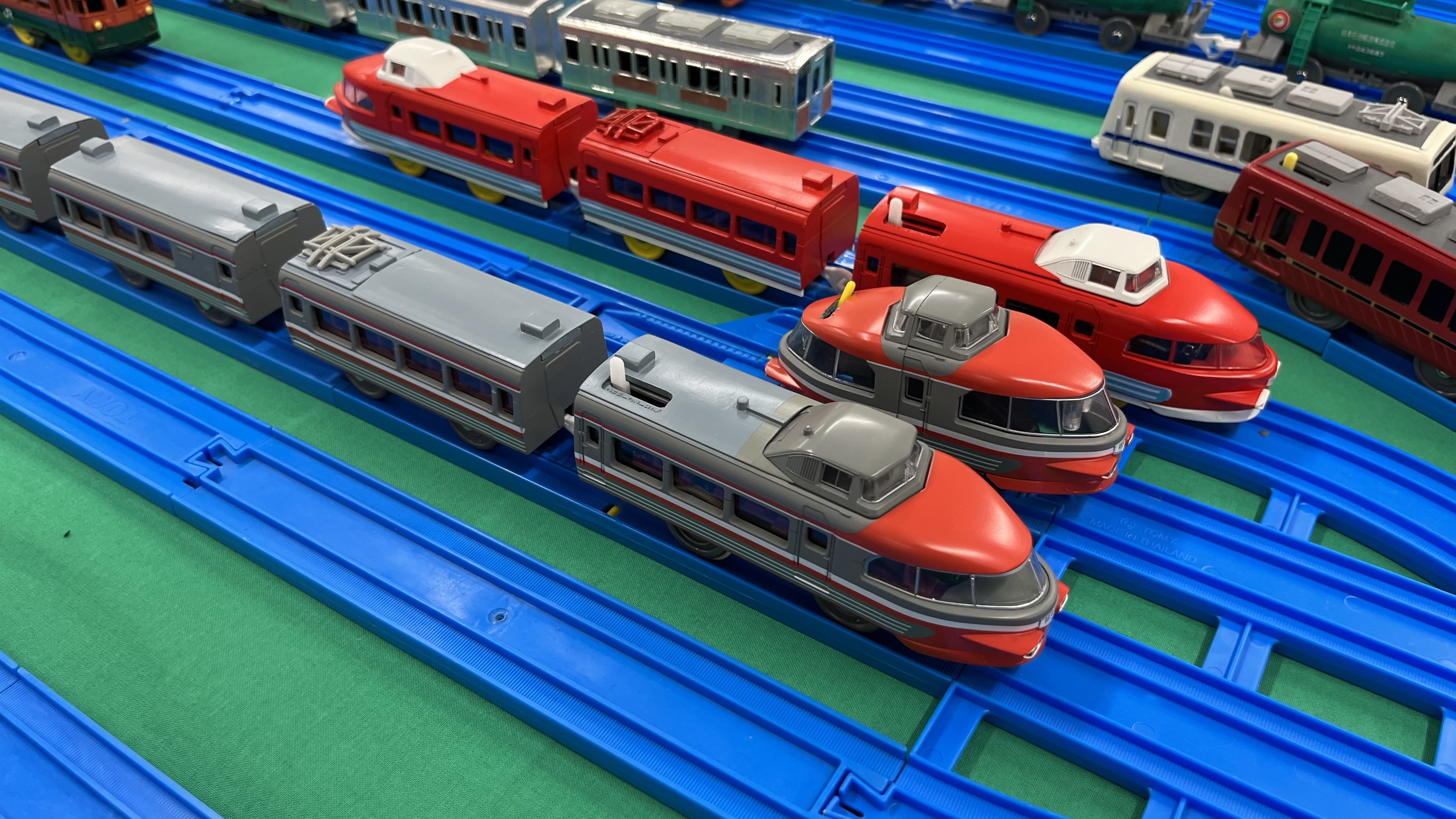 パンタ無し中間車を作る際に余った先頭部分を使った「びゅうNSE」が現れました。六角形の運転室が面白いです。そういえばこういった先頭部を組み合わせたものを「びゅう」と呼ぶのって、今の若いプラレーラーには伝わるんでしょうか?
