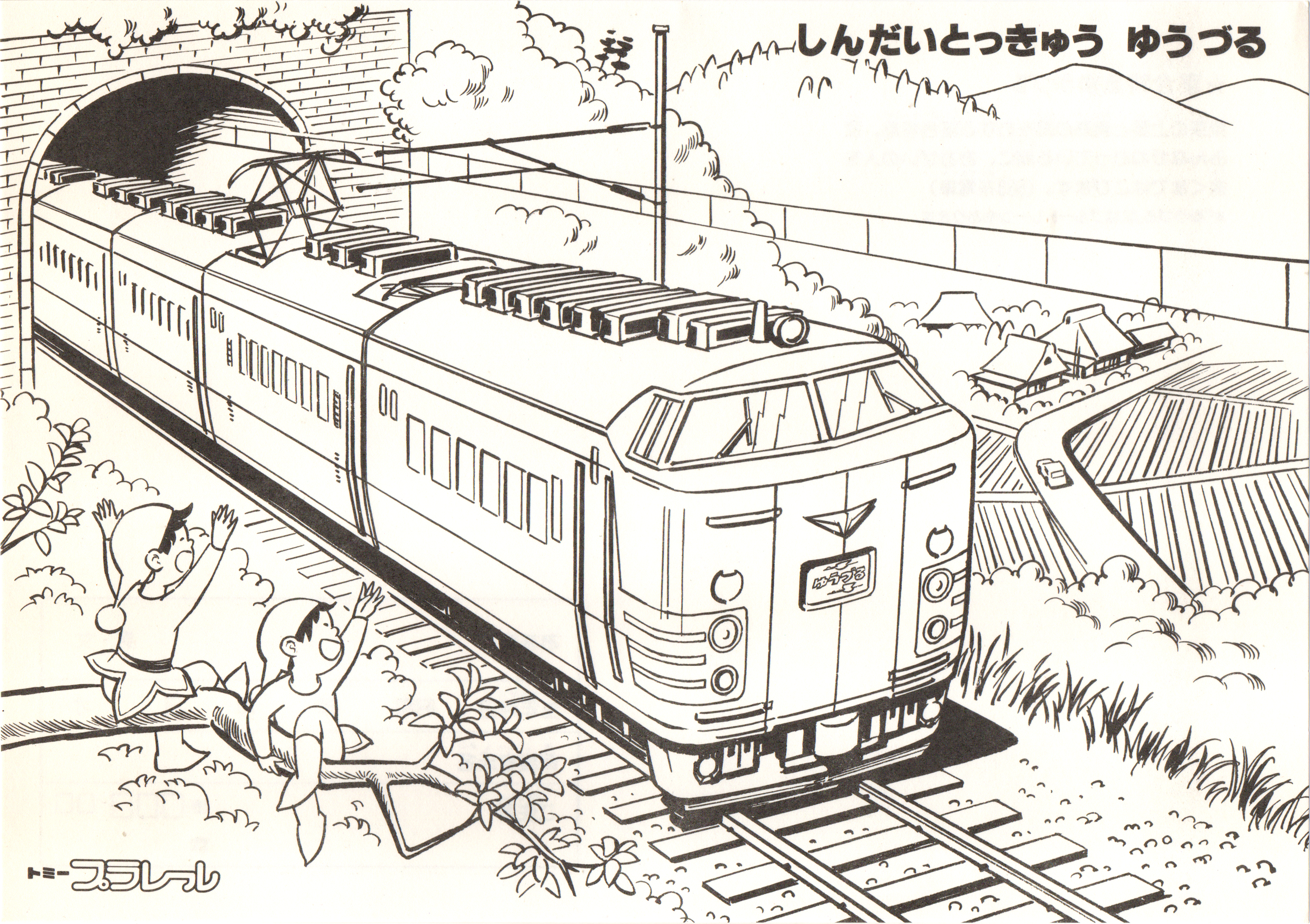 特急列車のぬりえブックです。プラレール20周年ロゴが削除されていることと、小人さんのイラストが健在なこと、L特急の列車として1981年廃止の「あまぎ」が選ばれていることから、おそらく1980年に配布されたと思われます。