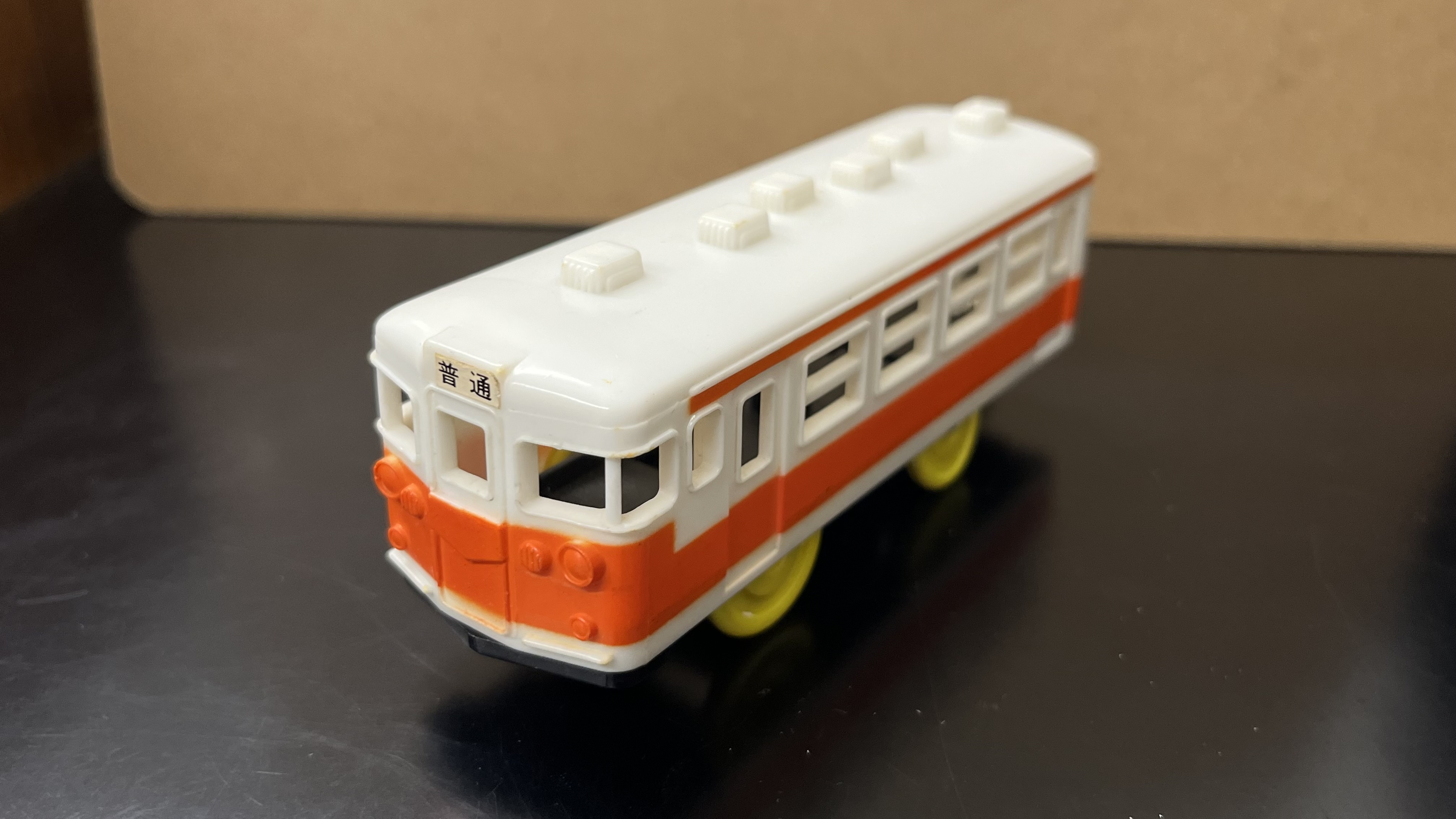 「近郊形でんしゃ ふみきりえきセット」の関西向けロット、または後期ロットとされるものに入っている「関西色」の電車。この塗装は関西本線向けの113系にのみ施されており、車体のモデルである165系は纏ったことがない。