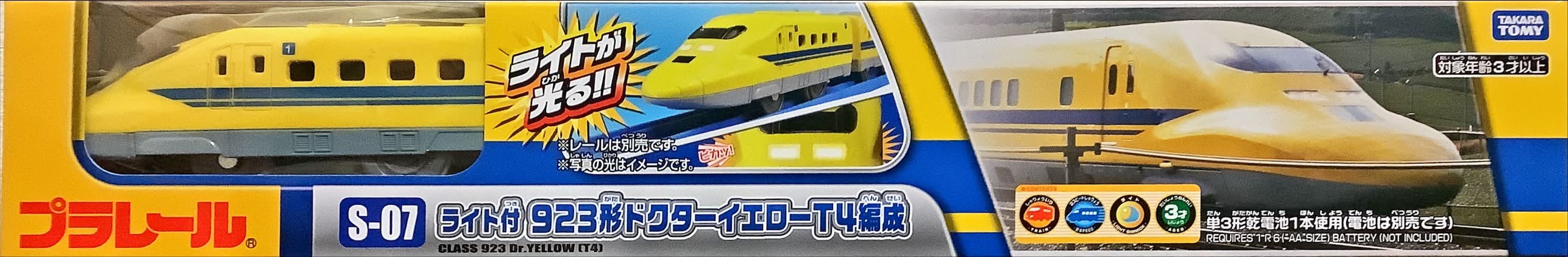 2月末頃から「S-41 寝台特急カシオペア」(9代目箱)、「S-05 ライト付 E7系新幹線かがやき」で、3月に入ってからは「S-07 ライト付923形ドクターイエローT4編成」にてタカラトミーロゴ縮小版の箱が出回っているのが確認されています。今後順次全ての箱に反映されるものと思われ、見慣れた大きめのタカラトミーロゴも過去のものとなりそうです。