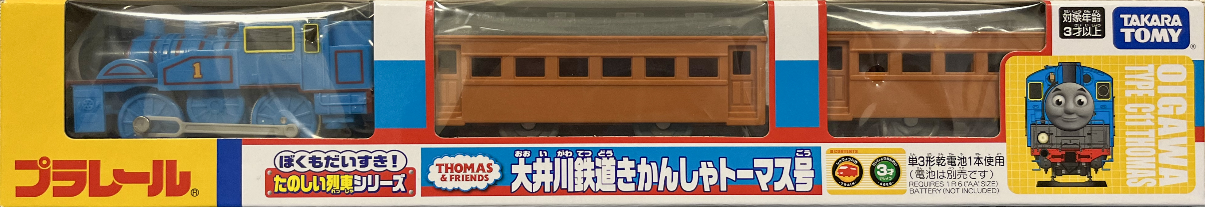 また、全国流通終了後も「大井川鉄道きかんしゃトーマス号」は断続的に生産され続けており、新金谷駅前のプラザロコをはじめ、大型の玩具店や模型店のプラレールコーナーで2026年現在も入手可能です。「大井川鉄道きかんしゃジェームス号」もプラザロコでの販売限定で生産が継続されていましたが、こちらは2022年に絶版となりました。「大井川鉄道きかんしゃトーマス号」は2025年生産分から箱前面の