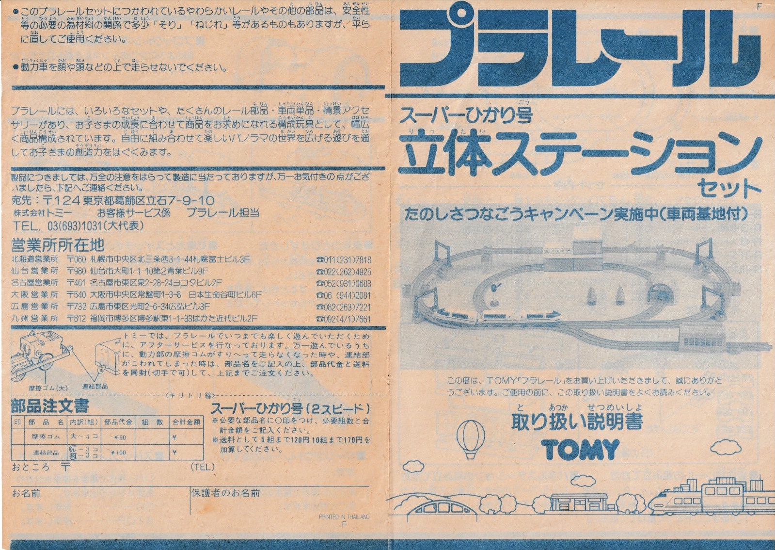 スーパーひかり号 立体ステーションセット 取り扱い説明書(1989年)