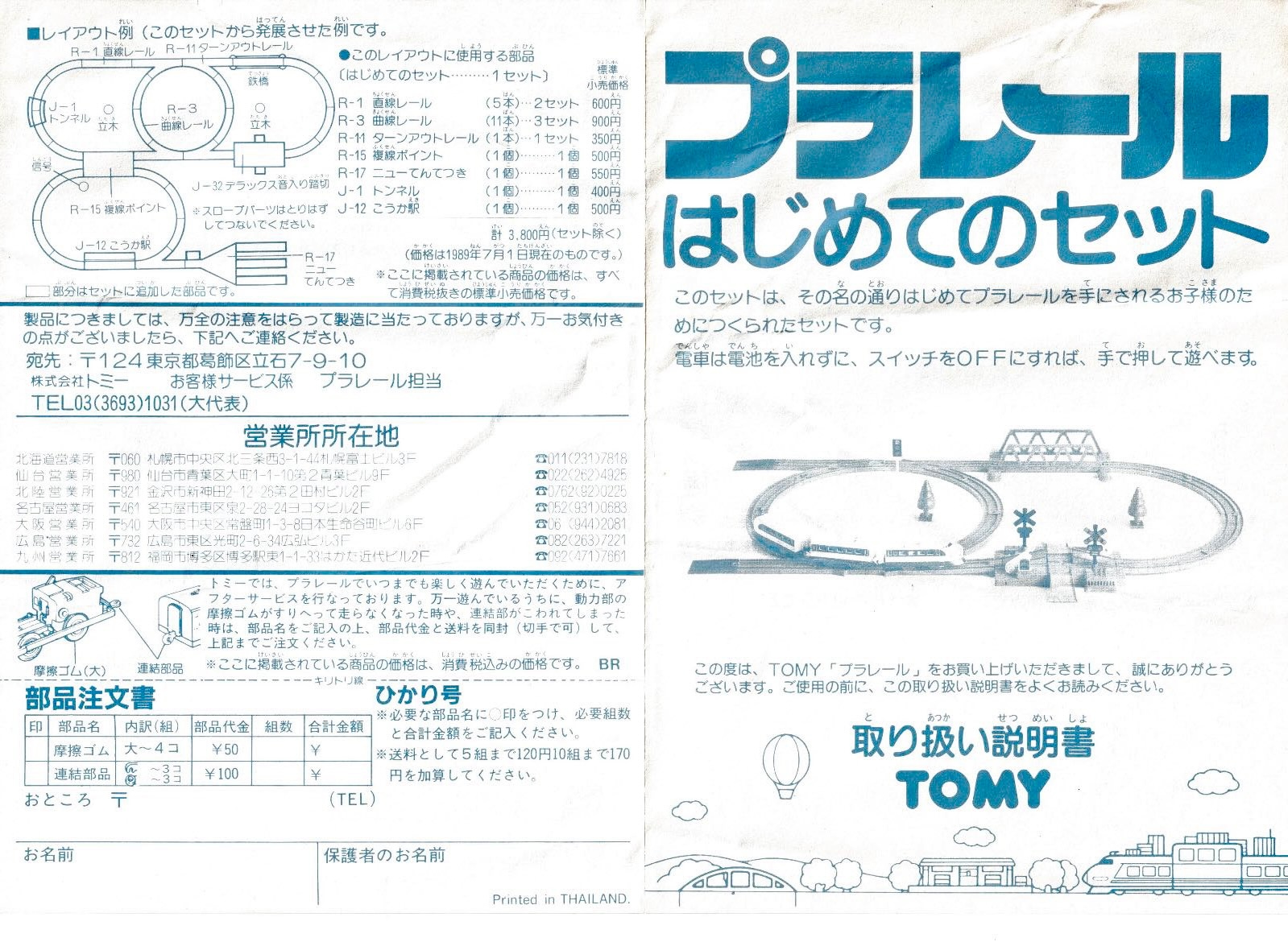 プラレールの製品に付いてきた説明書を紹介します。年代によって当然フォーマットは異なりますが、基本的に白地に青インクまたは黒インクでの印刷が長い間使われています。