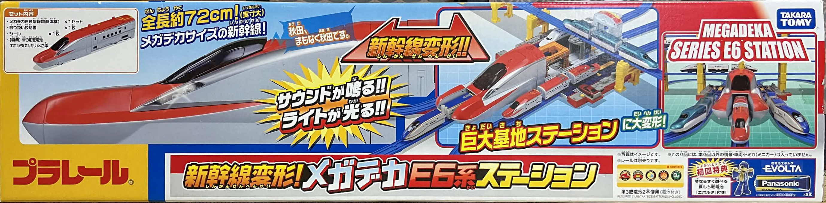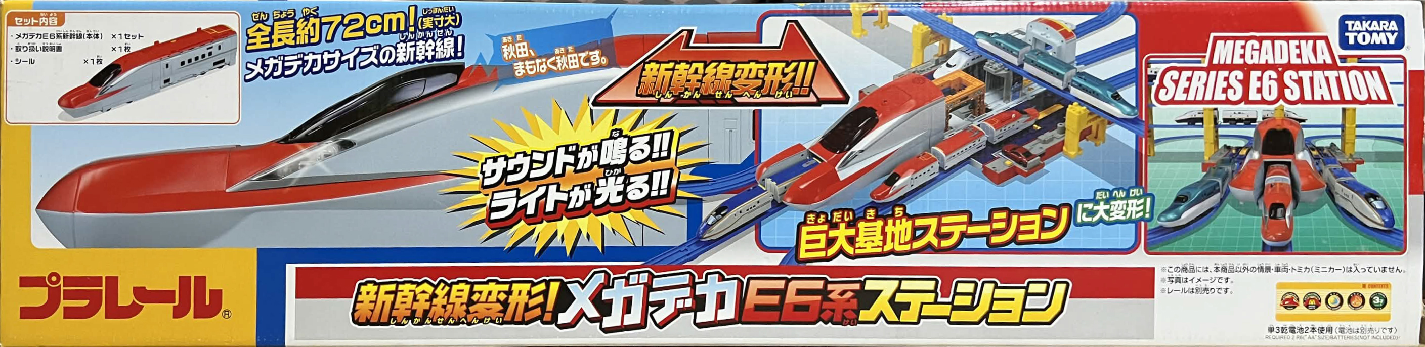大型情景では例が多い、新幹線の車両が駅や車両基地に変形する系のE6系バージョン。全長は約72cmと、往年の「超デカ500系のぞみ号」並みです。
