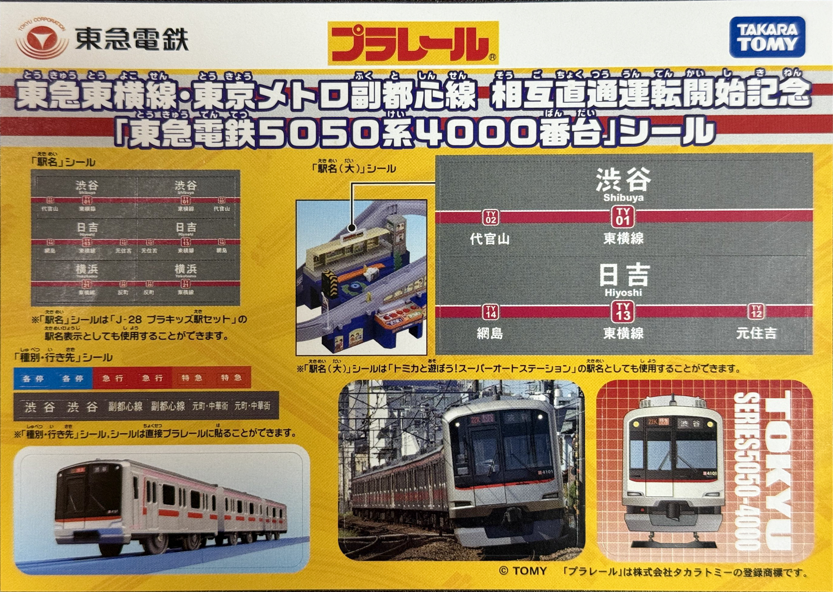 東急東横線・東京メトロ副都心線 相互直通運転開始記念 「東急電鉄5050系4000番台」シール(2013年3月)