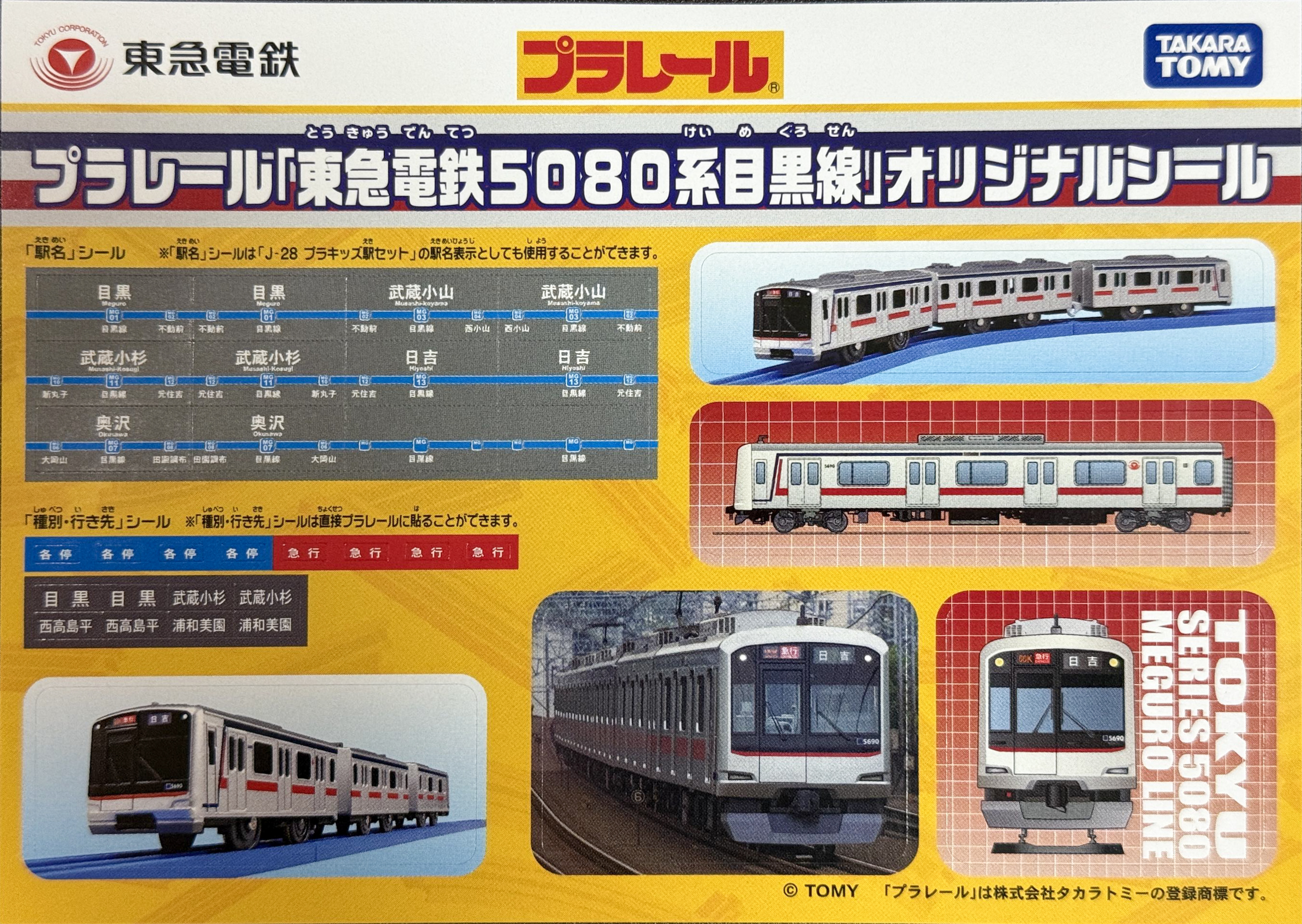 プラレール「東急電鉄5080系目黒線」オリジナルシール(2014年5月)