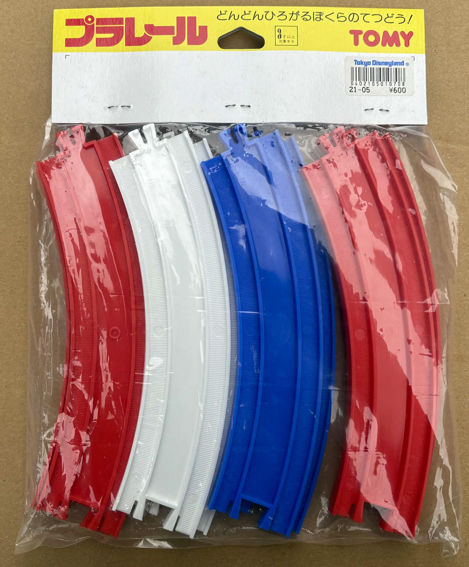 1996年頃に東京ディズニーランド内で発売されていたと言われる、カラーレール8本のセット。赤が4本、白が2本、青が2本入っています。商品名の記載はありません。