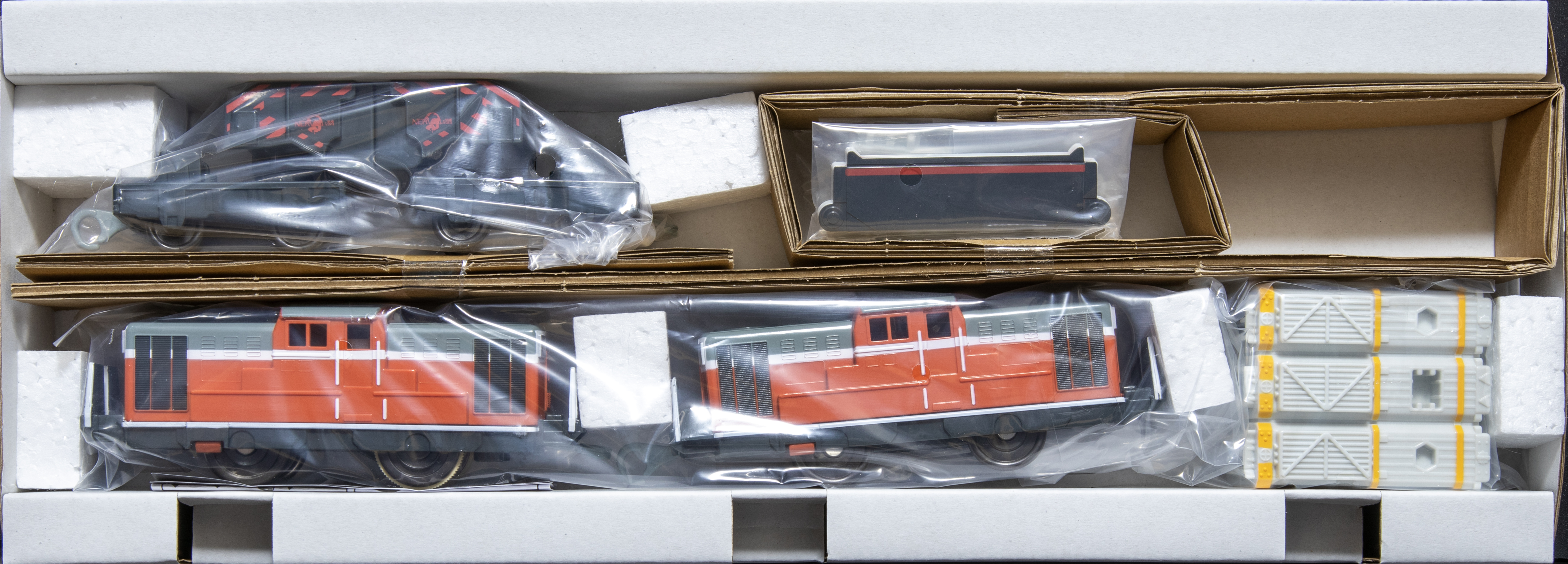 金文字PLARAILシリーズ初の製品。ハリー・ポッターシリーズに登場する列車、ホグワーツ特急です。劇中に登場したグレート・ウェスタン鉄道4900形蒸気機関車5972号機、イギリス国鉄のマーク1客車がプラレールらしいデフォルメをされながらも忠実に再現されています。機関車は炭水車が動力となっているいわゆる「C57動力」方式です。