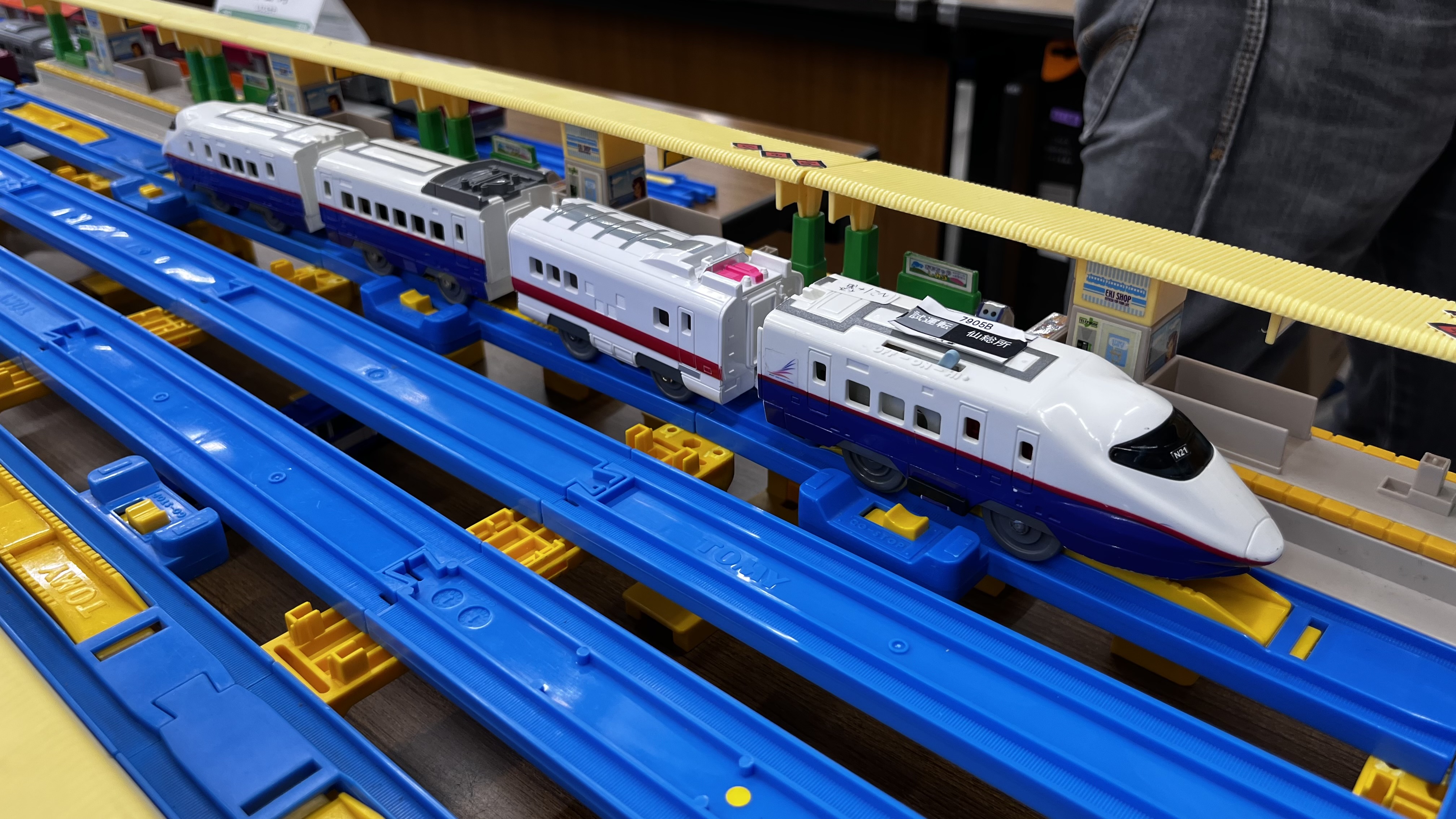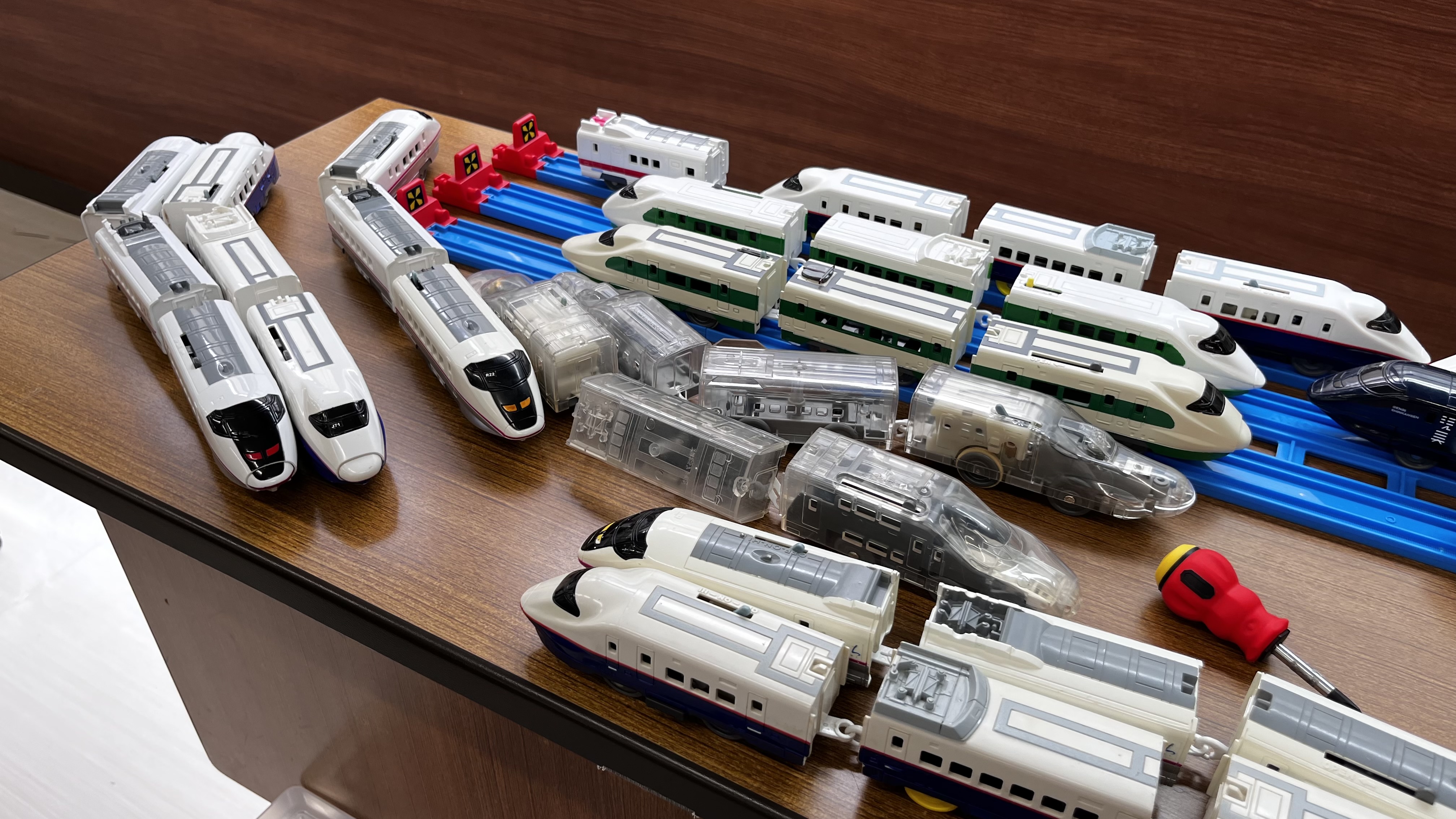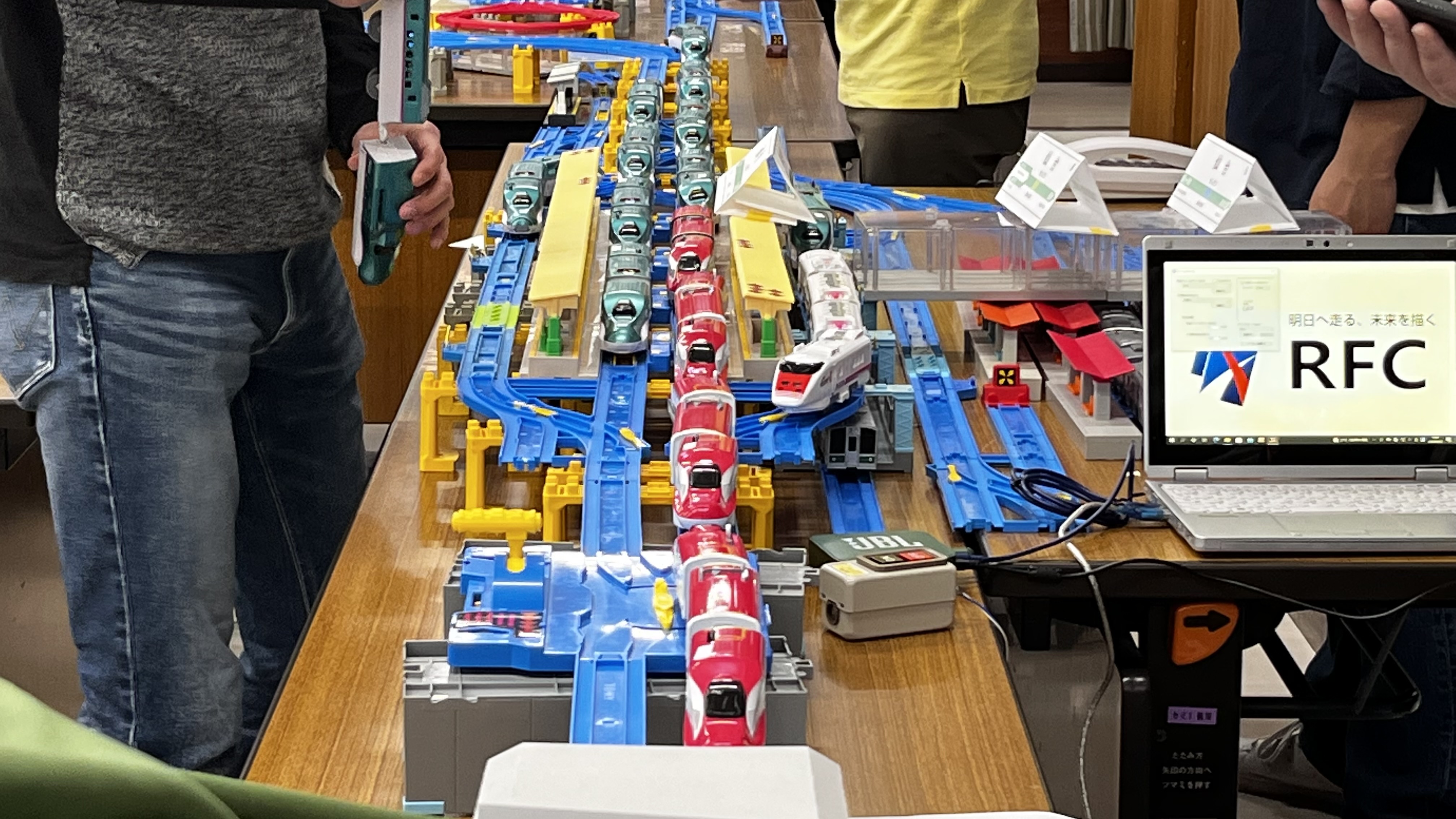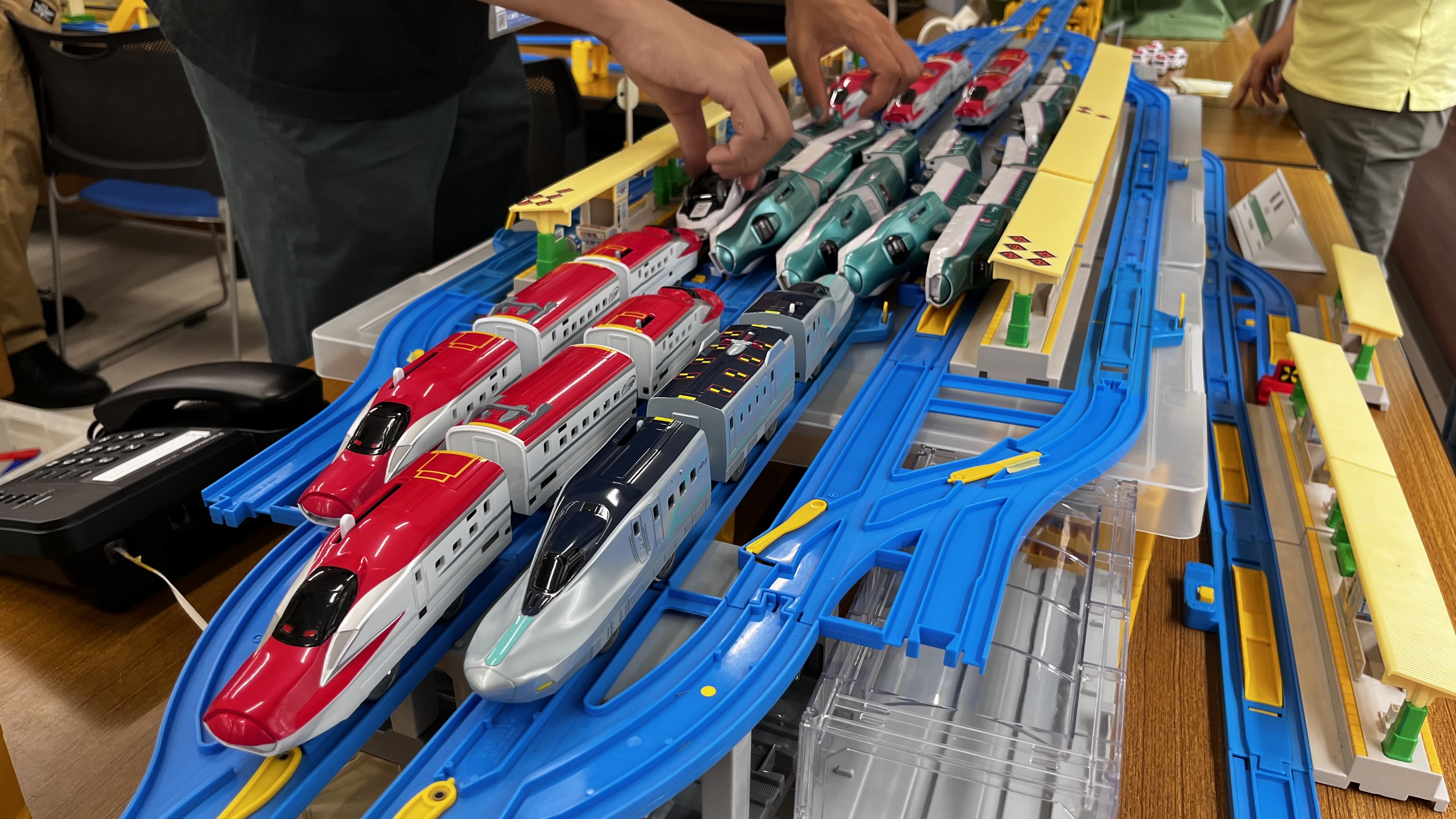 ぶっつけ本番というわけにも行かないので、まずは練習ダイヤなるもので流れを把握。参加者全員が全員プラレールのスペシャリストというわけではないので、駅やポイントの操作もこの練習時に慣れておく必要があります。