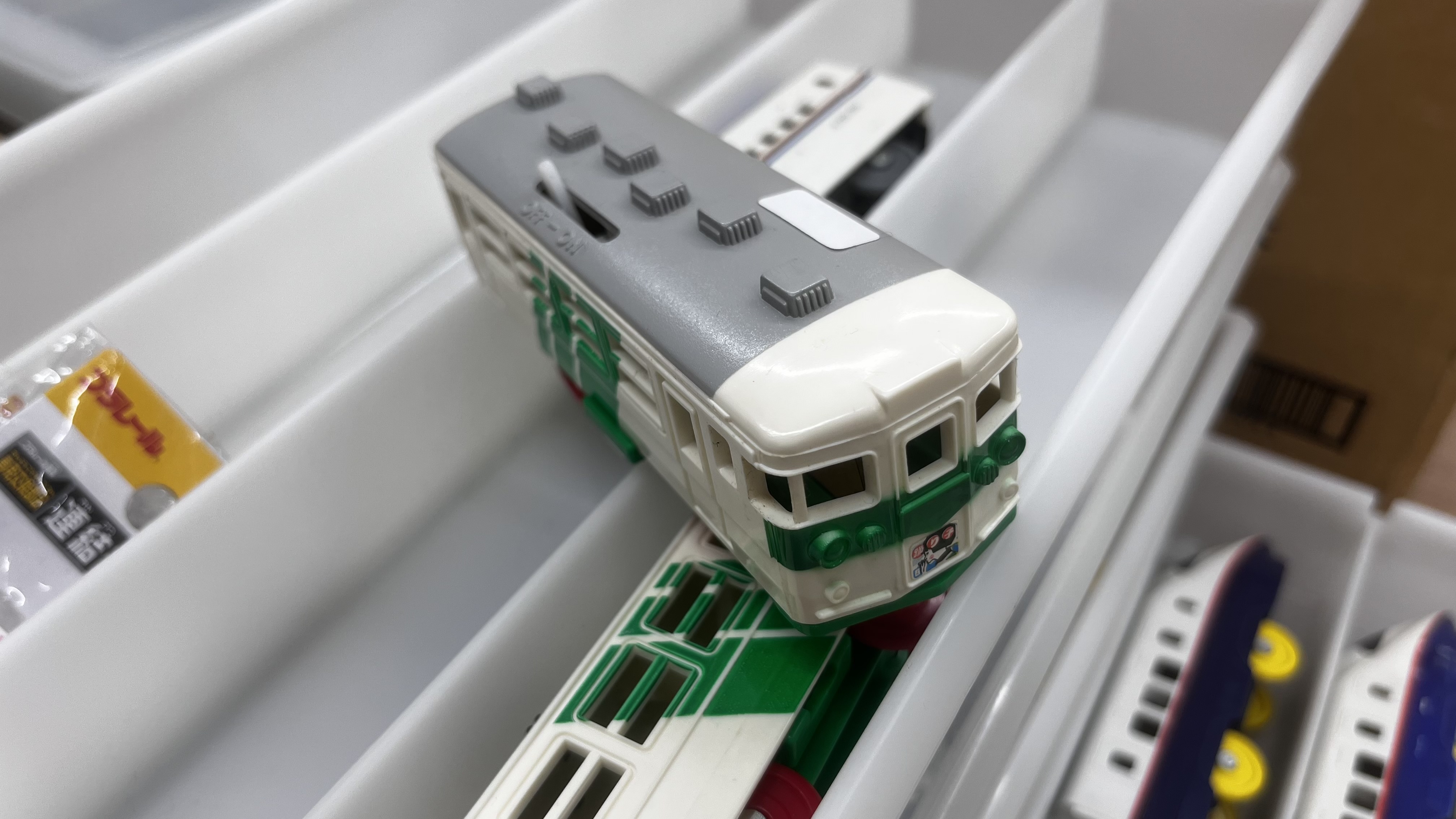 新幹線のダイヤ運転会と言えど、時代設定や区間によってはもちろん在来線も絡んできます。これはその一環として用意された185系の「おどりこ号」、しかも屋根が塗装されているタイプかつかなりの美品。こんなレアなアイテムすら必要な情景として徴用されます。