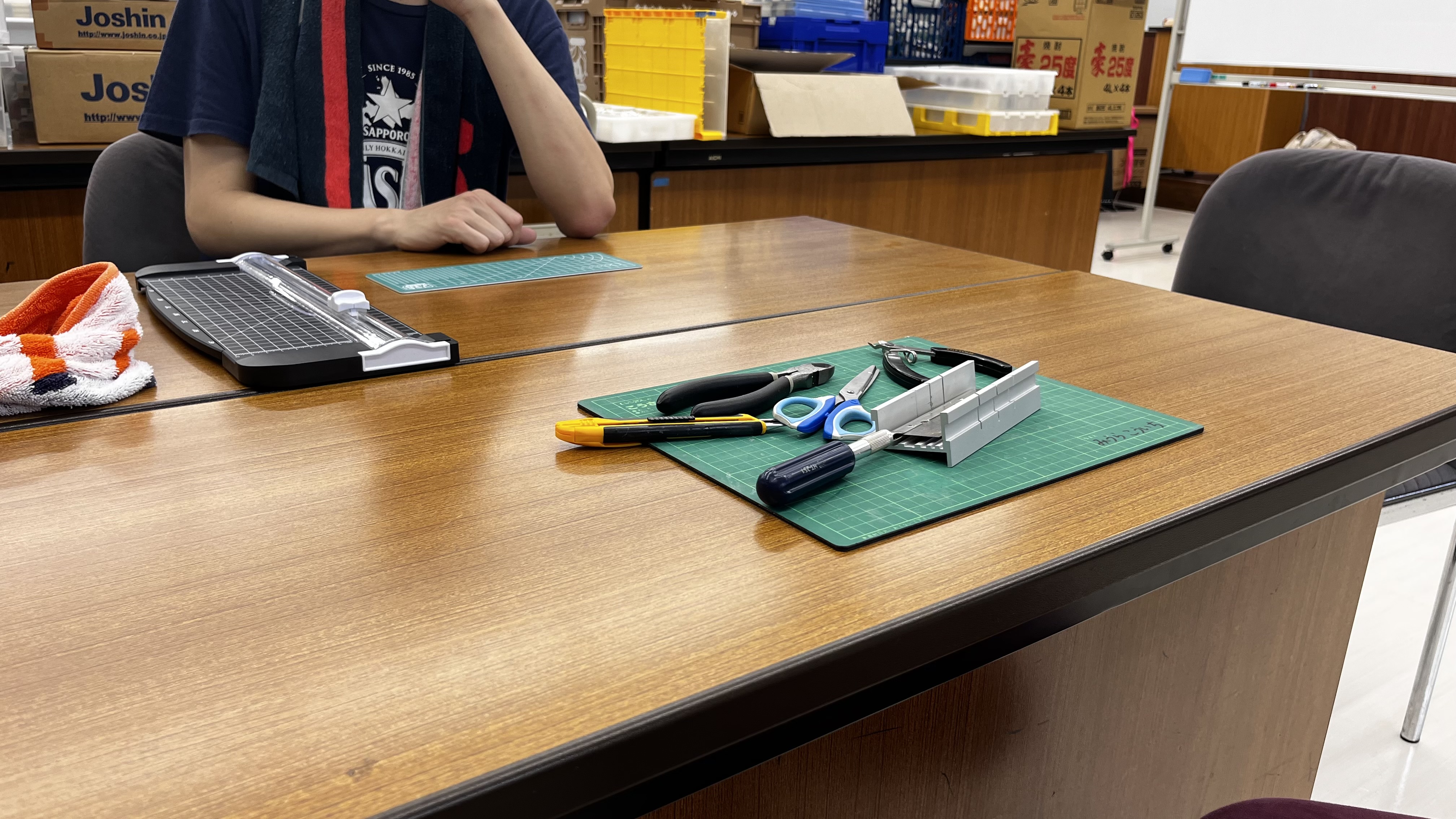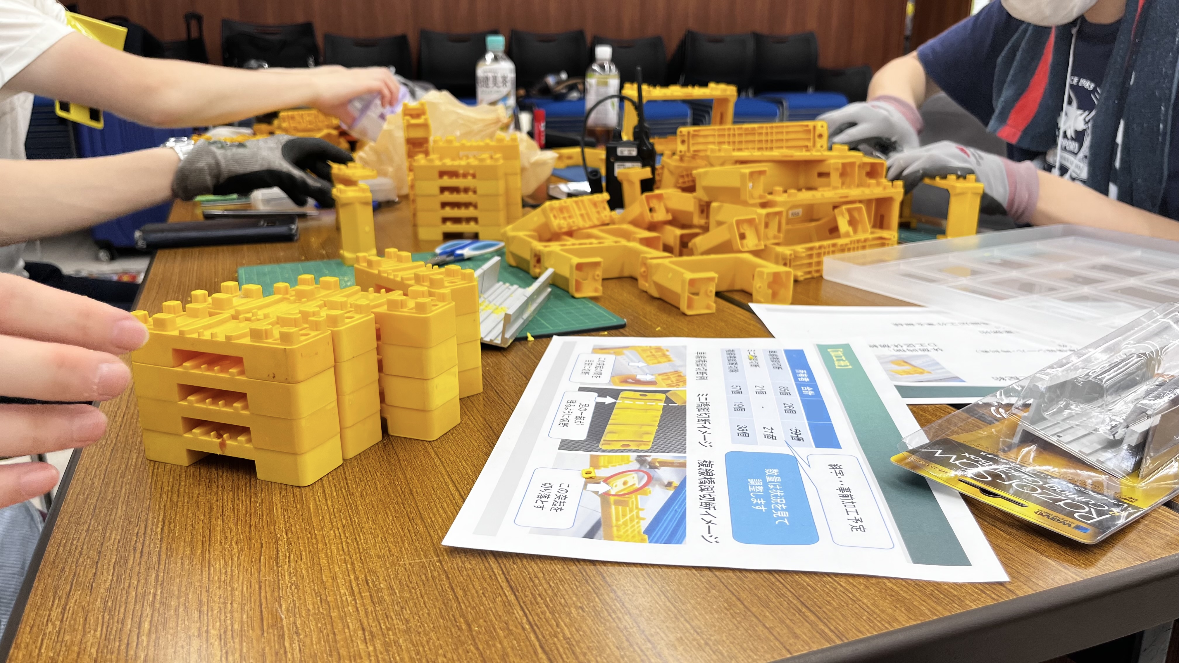 起工式もとい奇行式を執り行い、いよいよ設営だと思ったら「プラレール有識者諸君はこっち」と別部屋に押し込められ、レイアウトに必要となる橋脚の加工作業を任命されました。