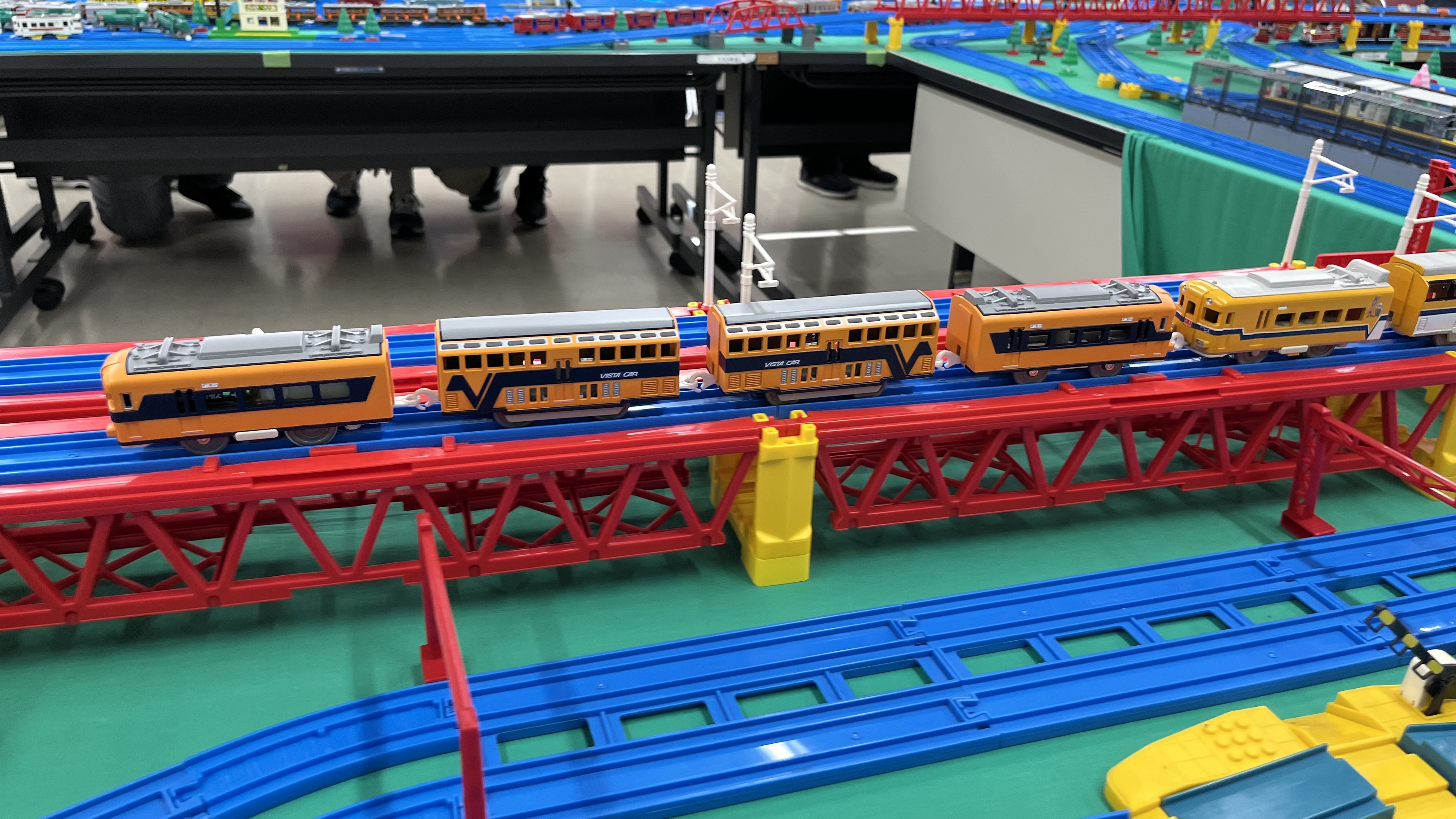 パンタ無し中間車を作る際に余った先頭部分を使った「びゅうNSE」が現れました。六角形の運転室が面白いです。そういえばこういった先頭部を組み合わせたものを「びゅう」と呼ぶのって、今の若いプラレーラーには伝わるんでしょうか?