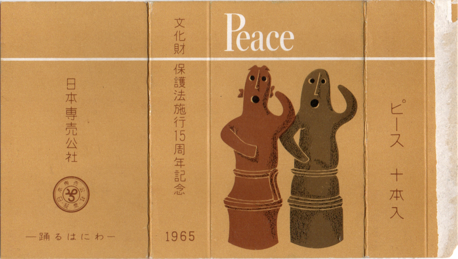 1950年8月29日に施行された文化財保護法が15周年を迎えた記念のもの。2体の「踊るはにわ」がなんとも言えない雰囲気を出しています。