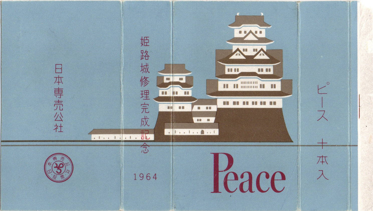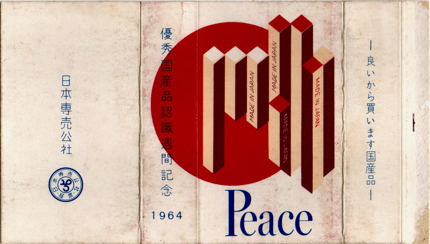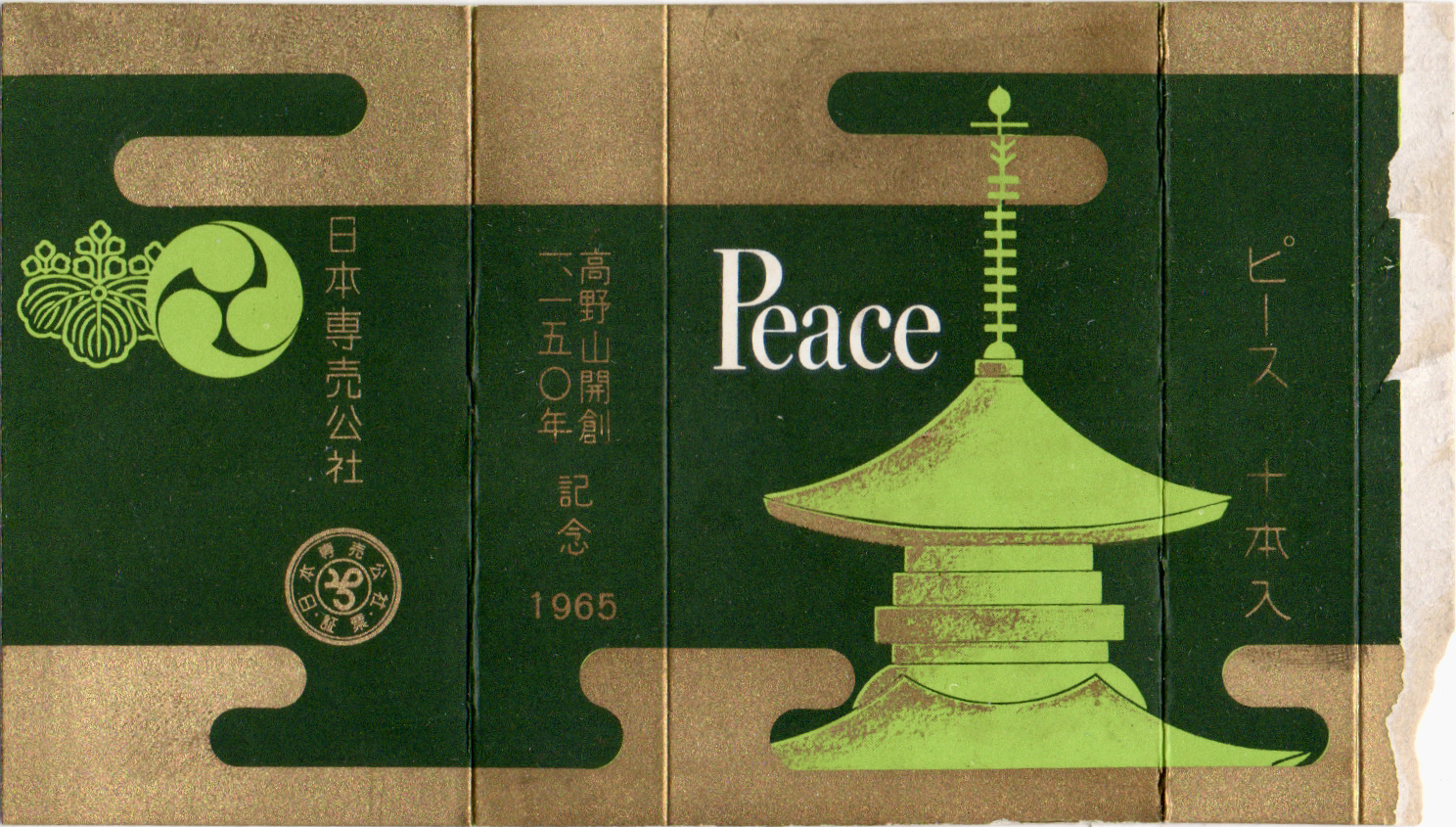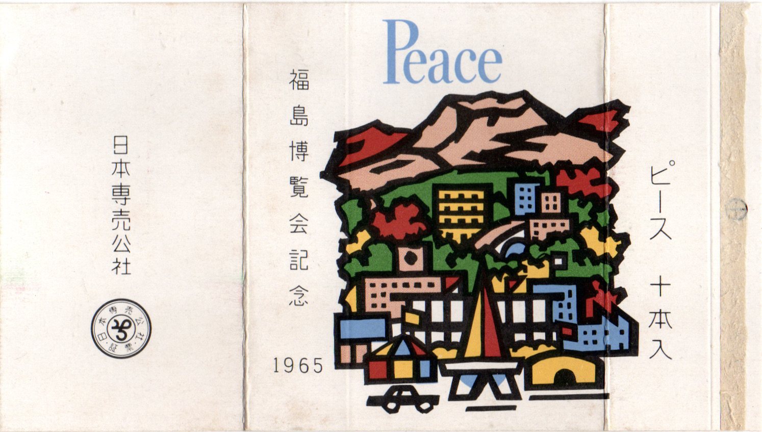 1966年1月26日〜2月18日に行われた教祖80年記念祭の記念パッケージ。表裏でピースのロゴと天理教の紋の配色が反転しているのが特徴です。