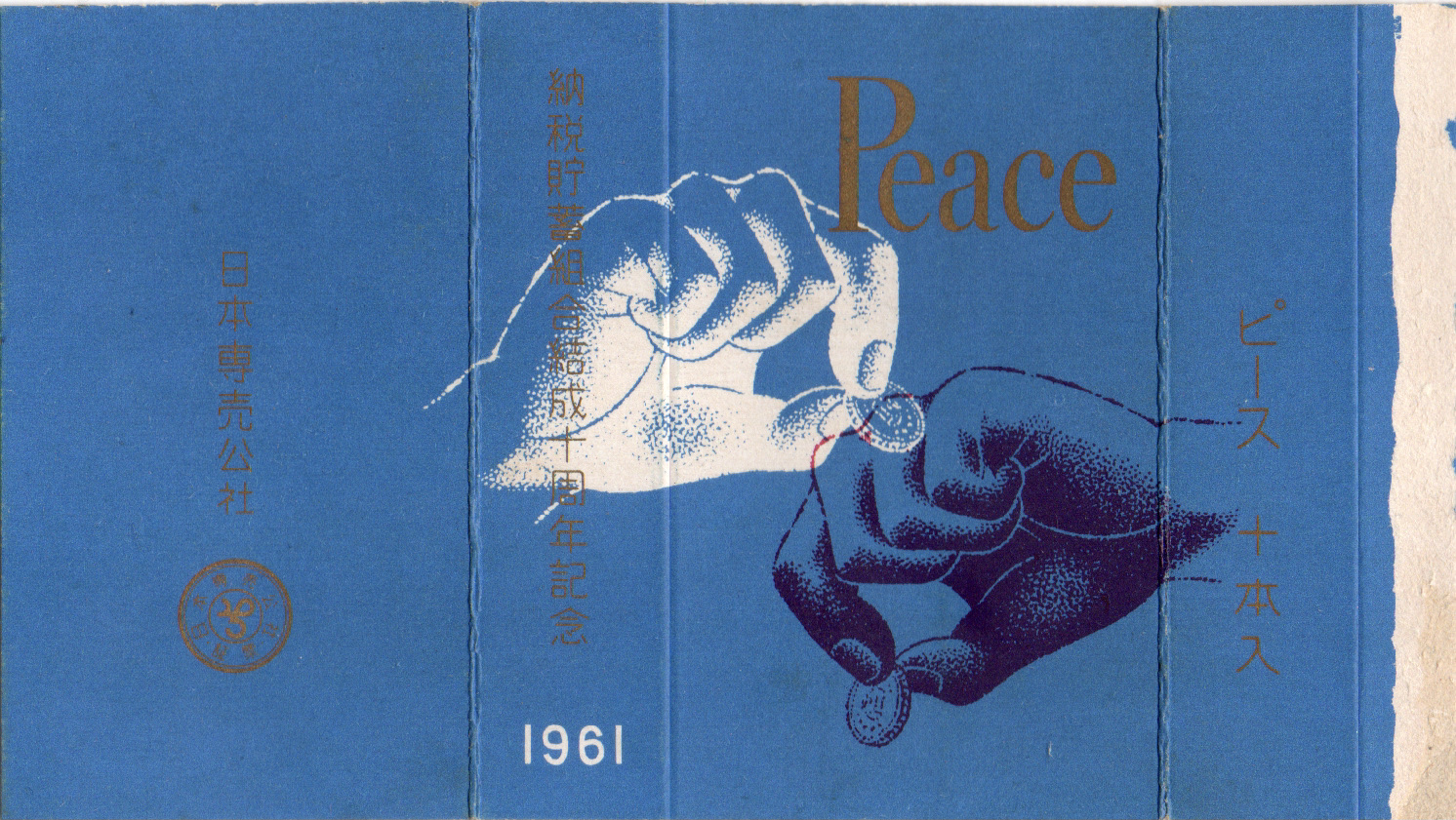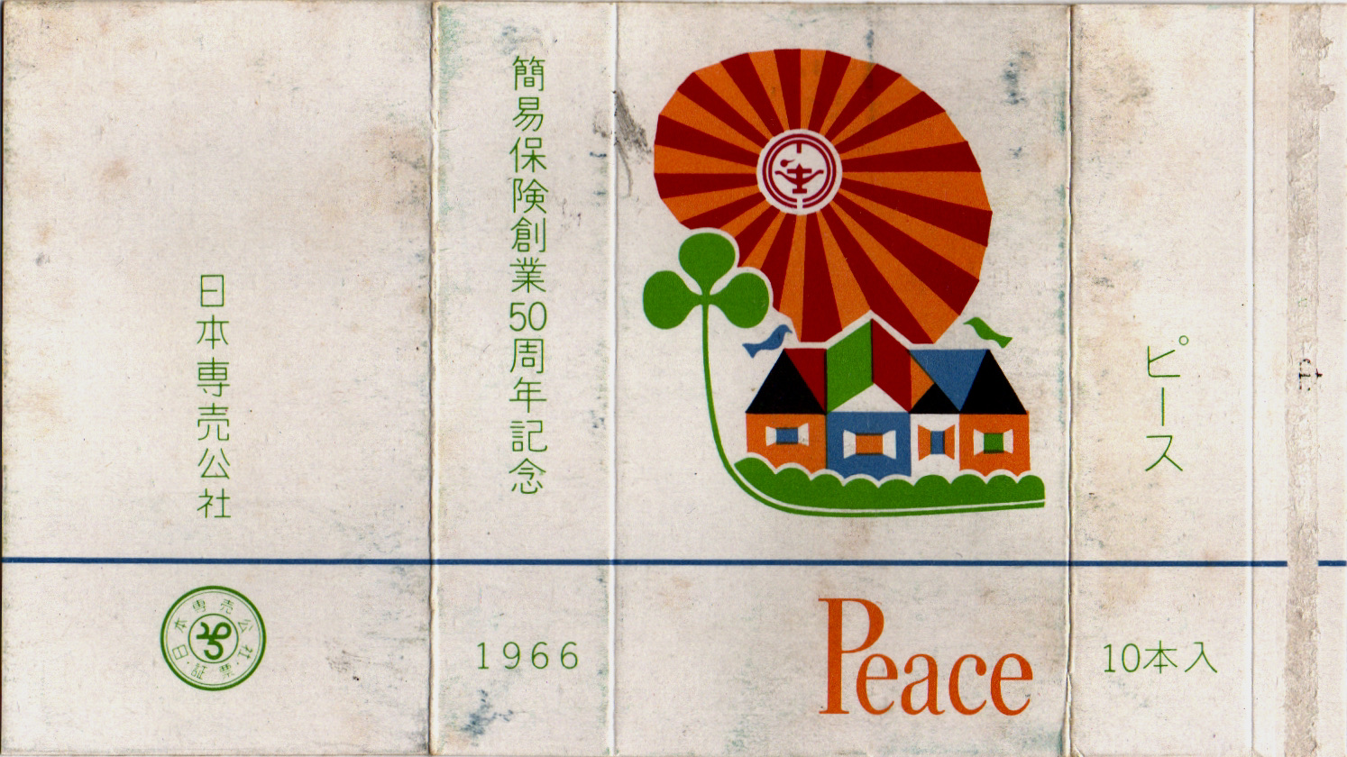 記念ショートピースとしては最後のものとなる、簡易保険の創業50周年を記念したパッケージ。現在の「かんぽ生命保険」の前身です。