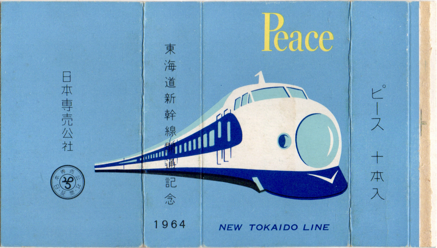 1964年10月1日に東海道新幹線が開通することを記念して発売されたパッケージ。青っ鼻の0系が印象的です。