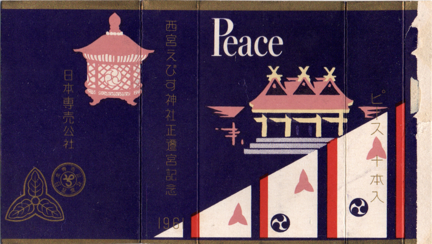 兵庫県西宮市にあるえびす神社の総本社である西宮神社の本殿と拝殿が1961年11月に再建された事を記念したパッケージ。戦時中に空襲で燃えてしまったのを再建したそうです。