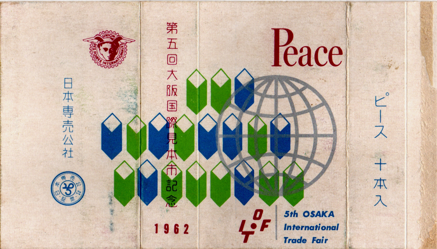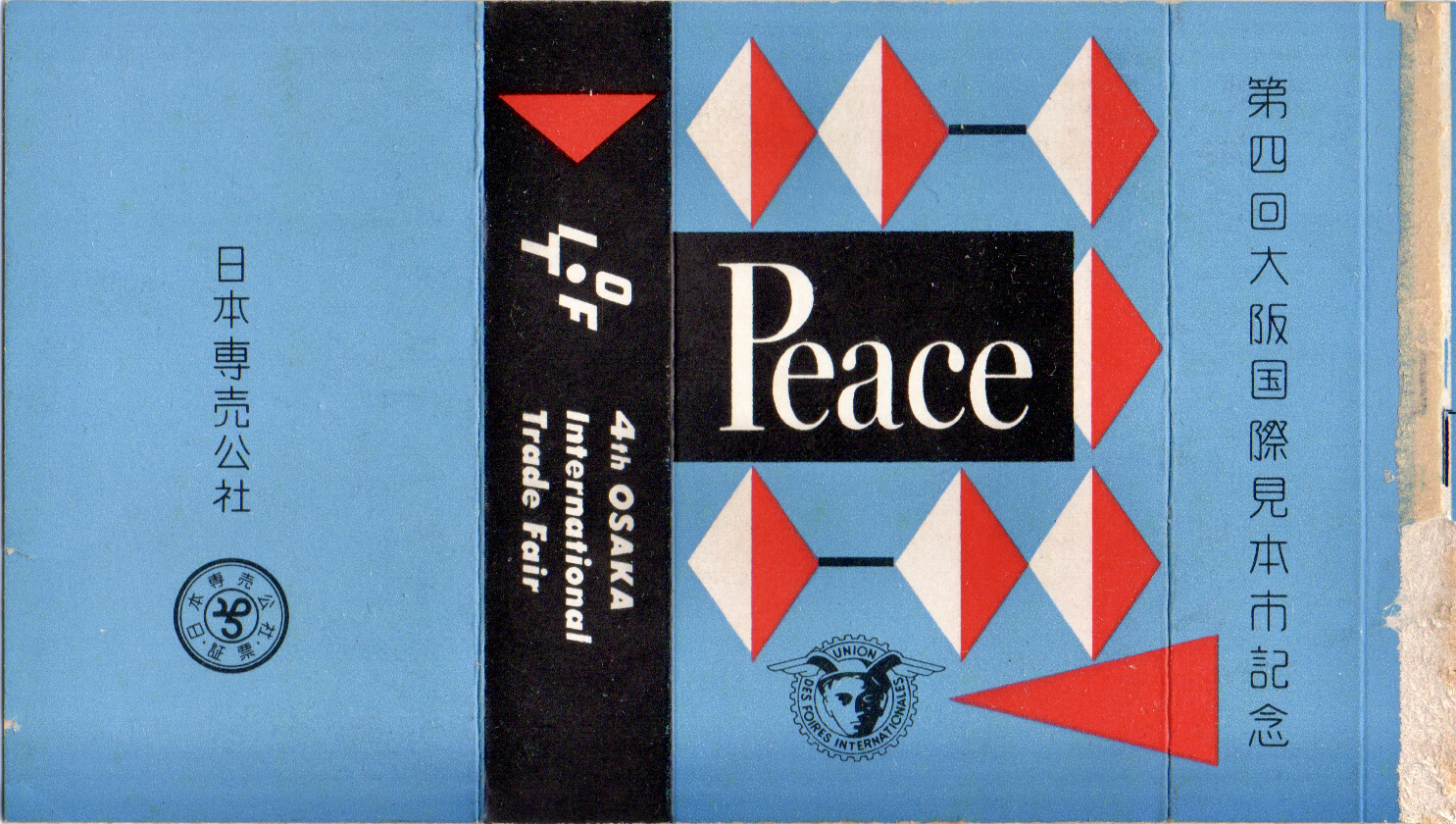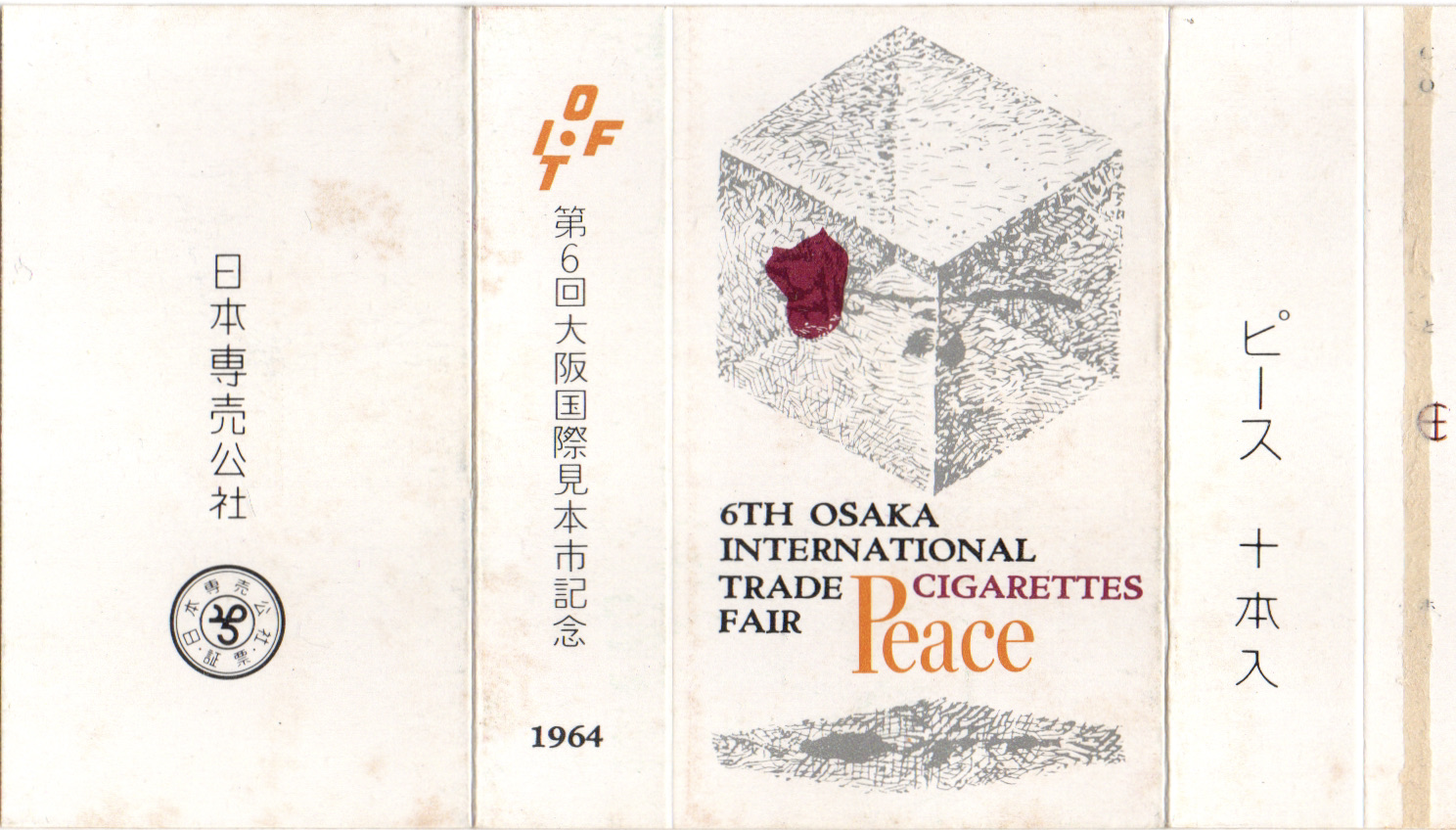 1964年開催の第6回大阪国際見本市開催記念のパッケージ。バラが入った浮いたキューブの絵柄がちょっとハイカラ。