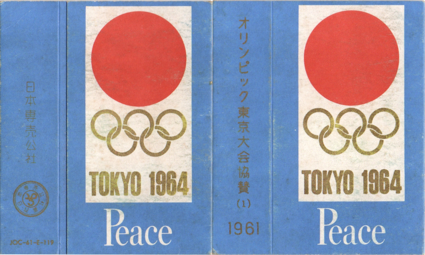 1964年東京大会開催まで3年となった1961年に発売された専売公社の協賛パッケージ。(1)とありますが、(2)はありません。