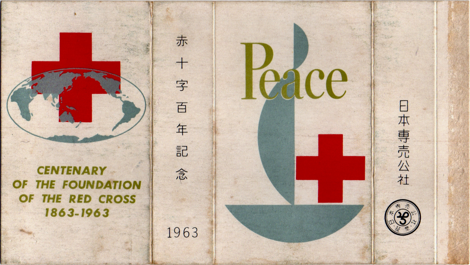 1863年に赤十字社が設立されてから100周年を迎えたことを記念したパッケージ。船の上に乗った赤十字と地球の地図で国際組織である事を表しているみたいです。