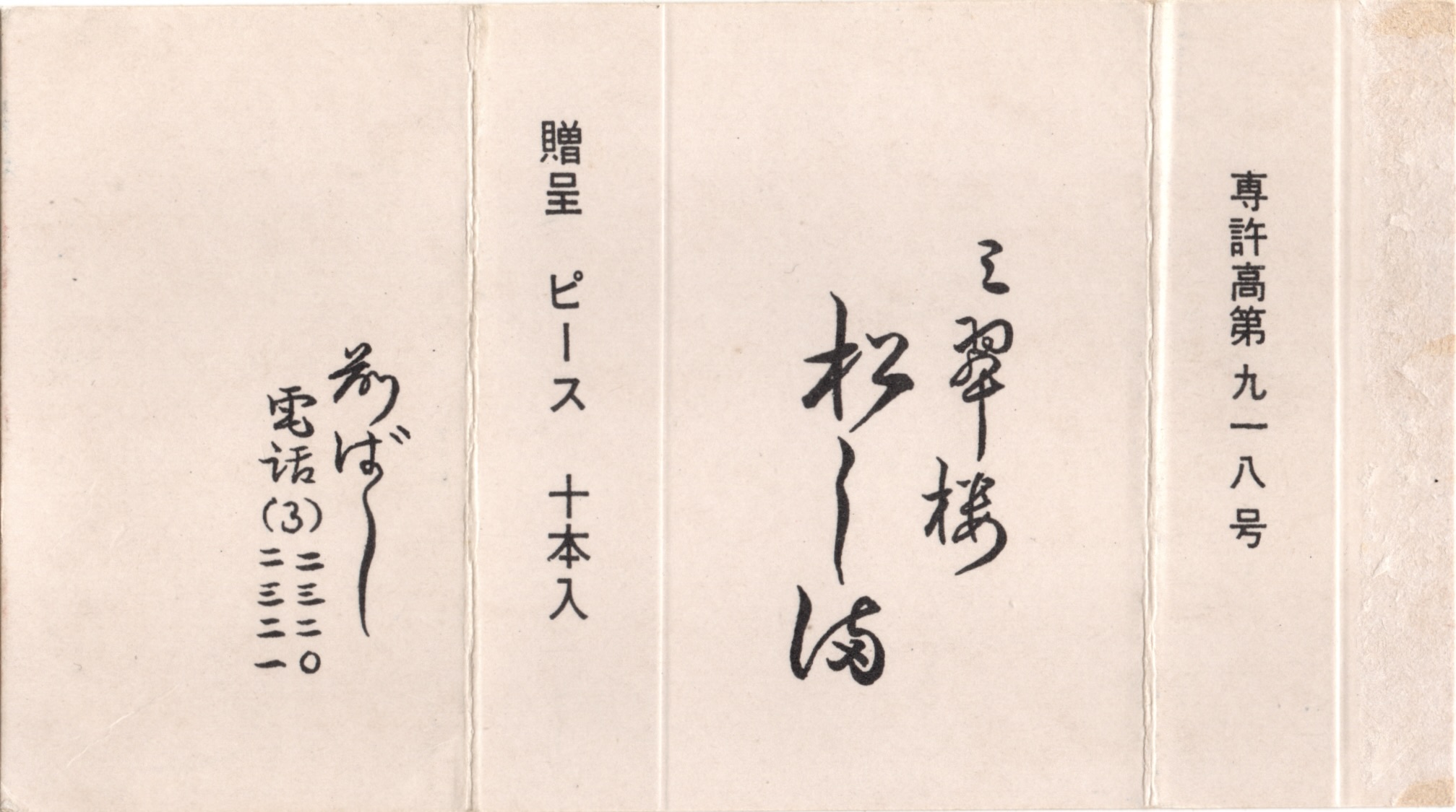 」が使われているものもあります。一部「日本専売公社許可(番号)」表記のものがあり、地方局から出ているのか不明なものがありますが、贈呈の店舗が高崎地方局管轄内なのでこちらに掲載しています。