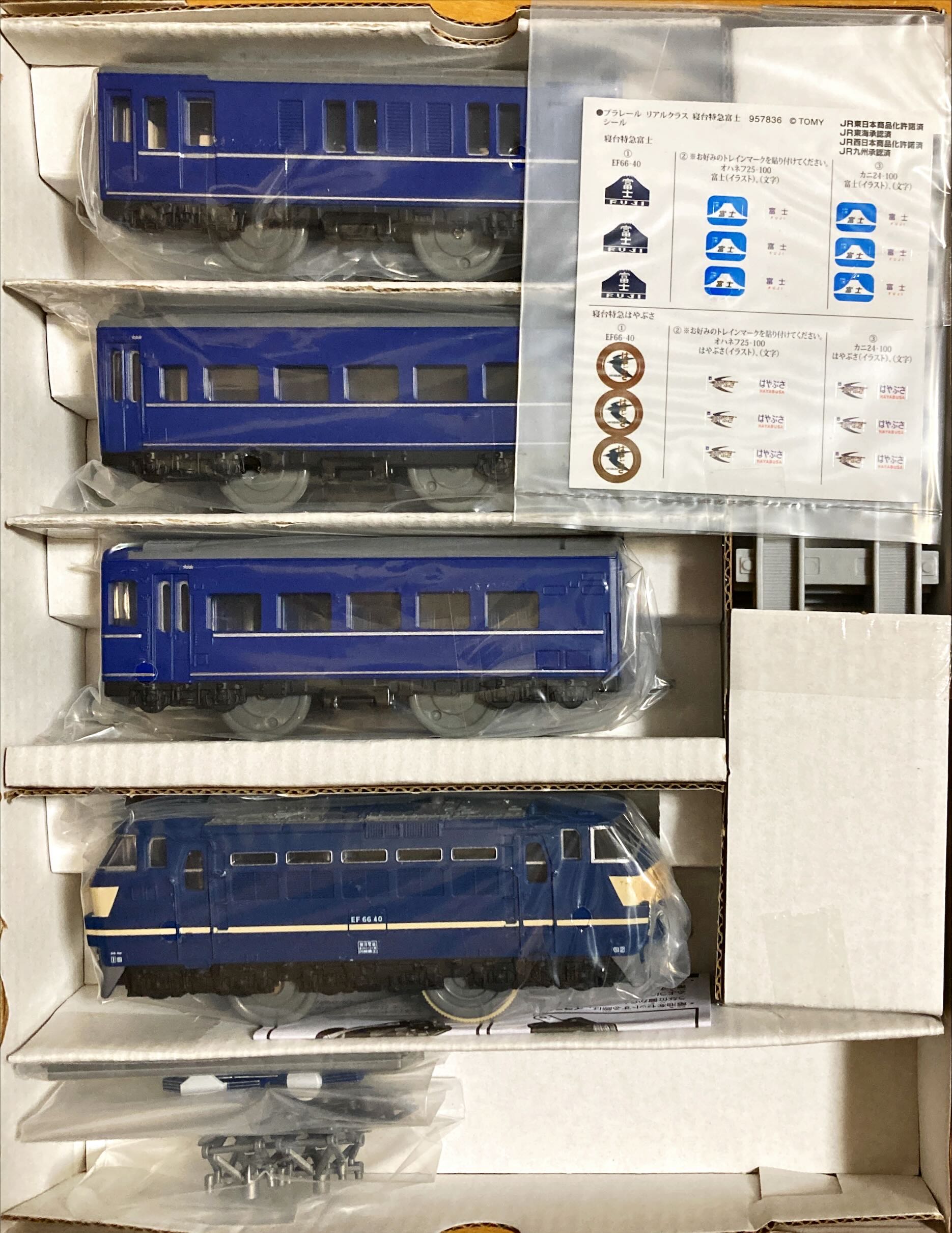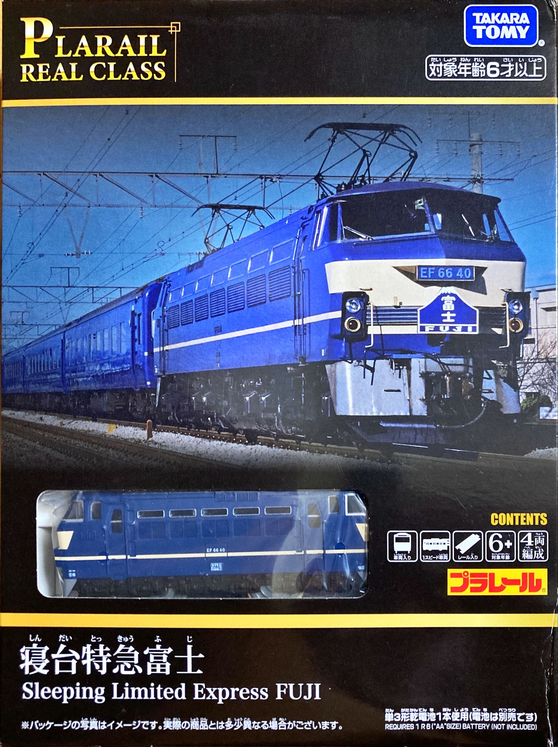 プラレールのブルートレインとしてはお馴染み「富士」がリアルクラスでも登場。「あさかぜ」に続くEF66牽引のブルートレインです。プラレールの「富士」は1979年から2003年にかけて「ブルートレイン」としてEF65牽引の姿で発売されていましたが、リアルクラスでは1985年に牽引機が変更され、廃止時まで運行された組み合わせとなりました。