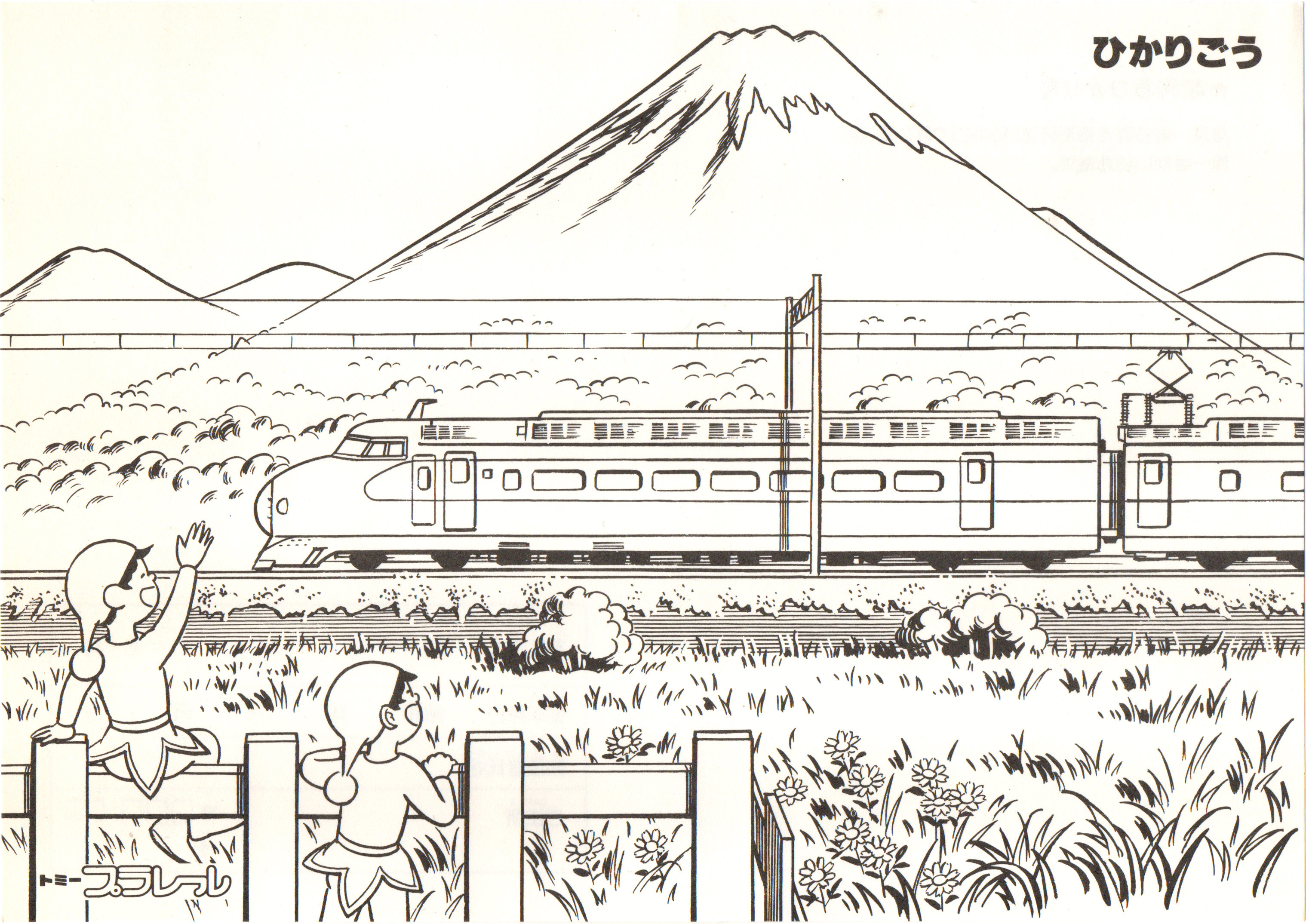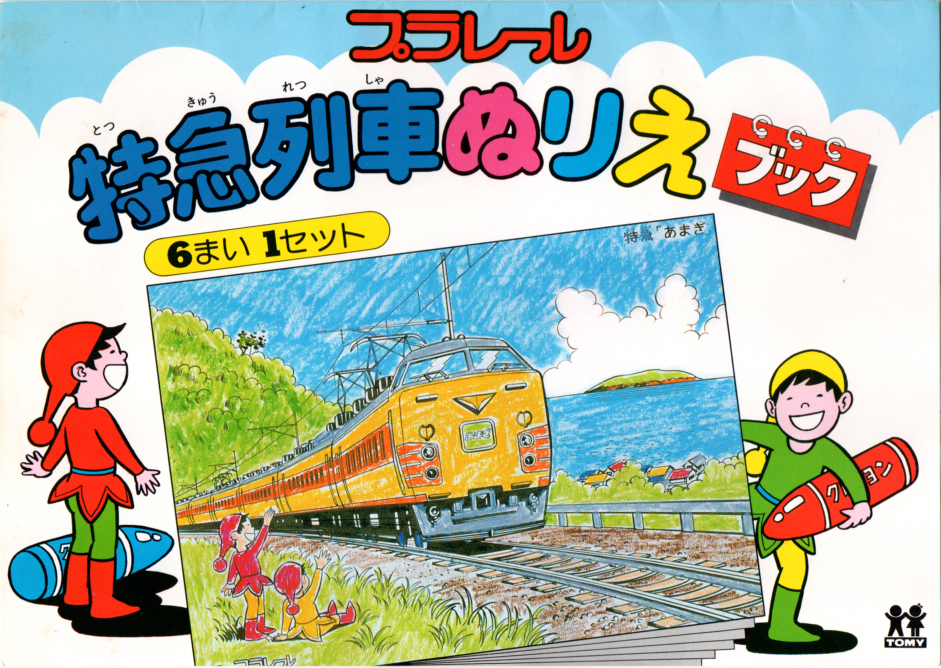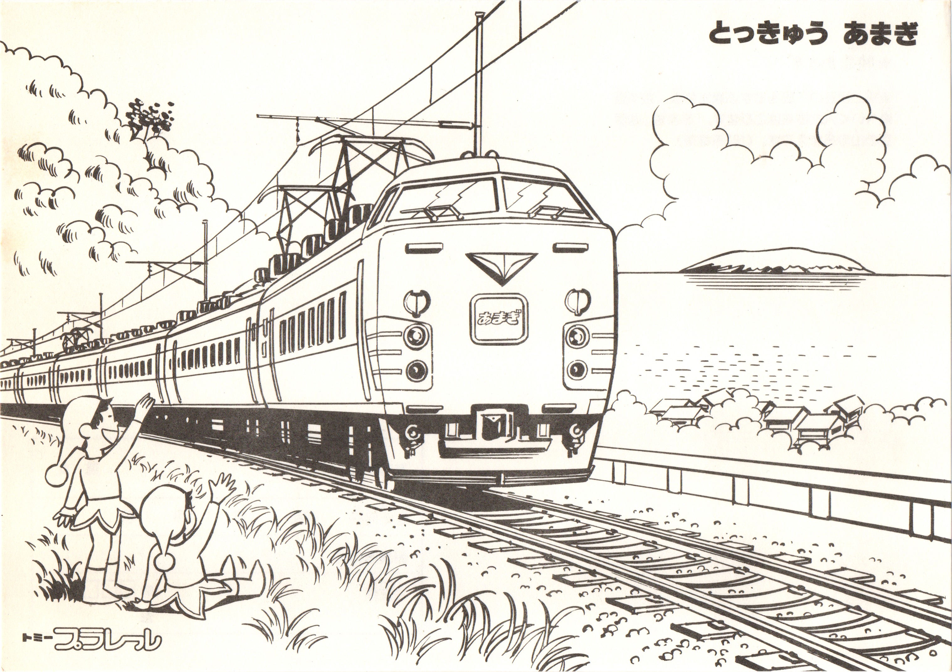 特急列車のぬりえブックです。プラレール20周年ロゴが削除されていることと、小人さんのイラストが健在なこと、L特急の列車として1981年廃止の「あまぎ」が選ばれていることから、おそらく1980年に配布されたと思われます。