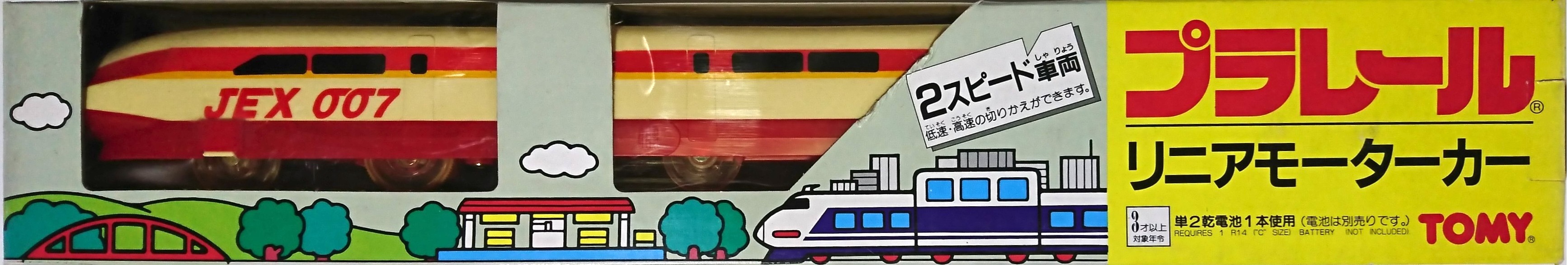動力車1両単品箱は3両単品と異なりイラストは無く、商品名の位置も逆に配置された黄色と白色の2色箱でした。