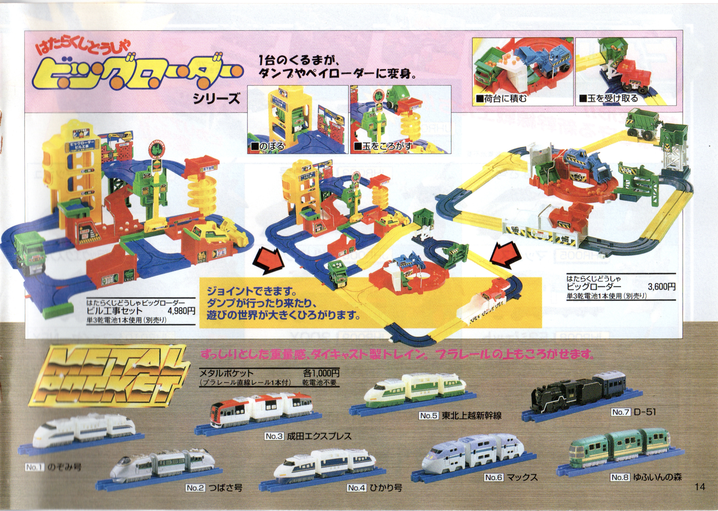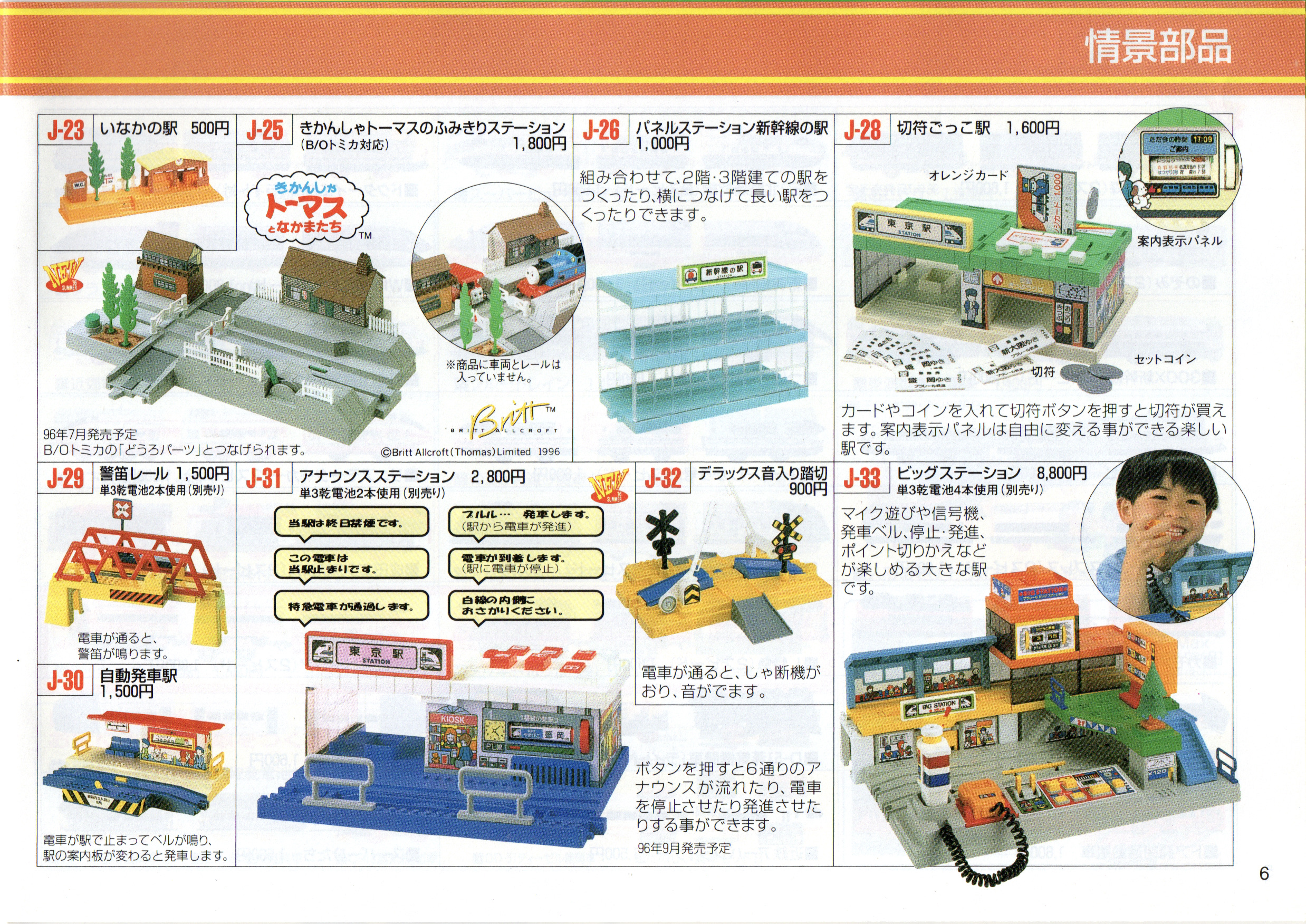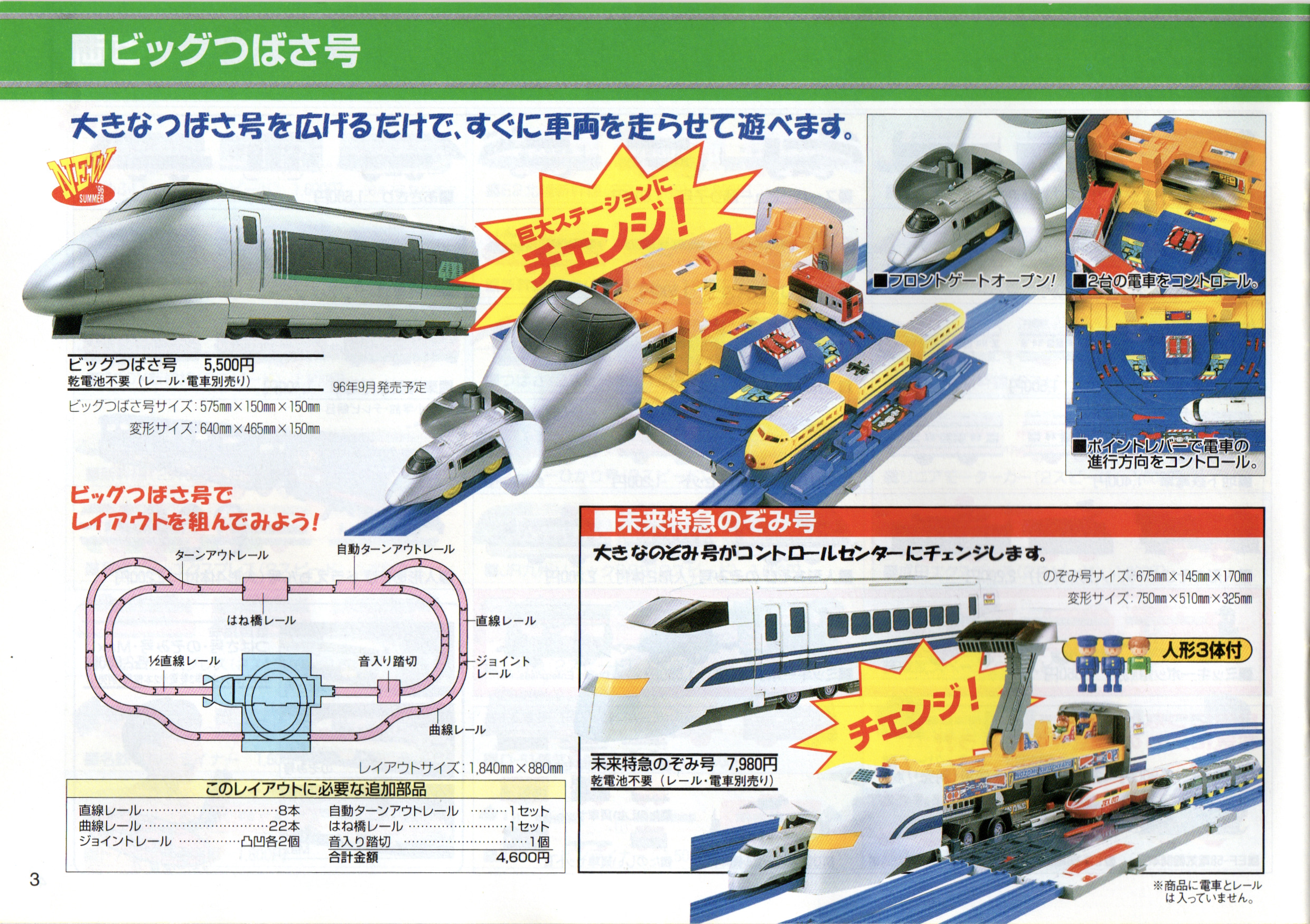 1996年版のカタログです。トミカと合同のカタログとなっています。大型情景「ビッグつばさ号」、車両単品「ゆふいんの森」などが新製品として紹介されています。