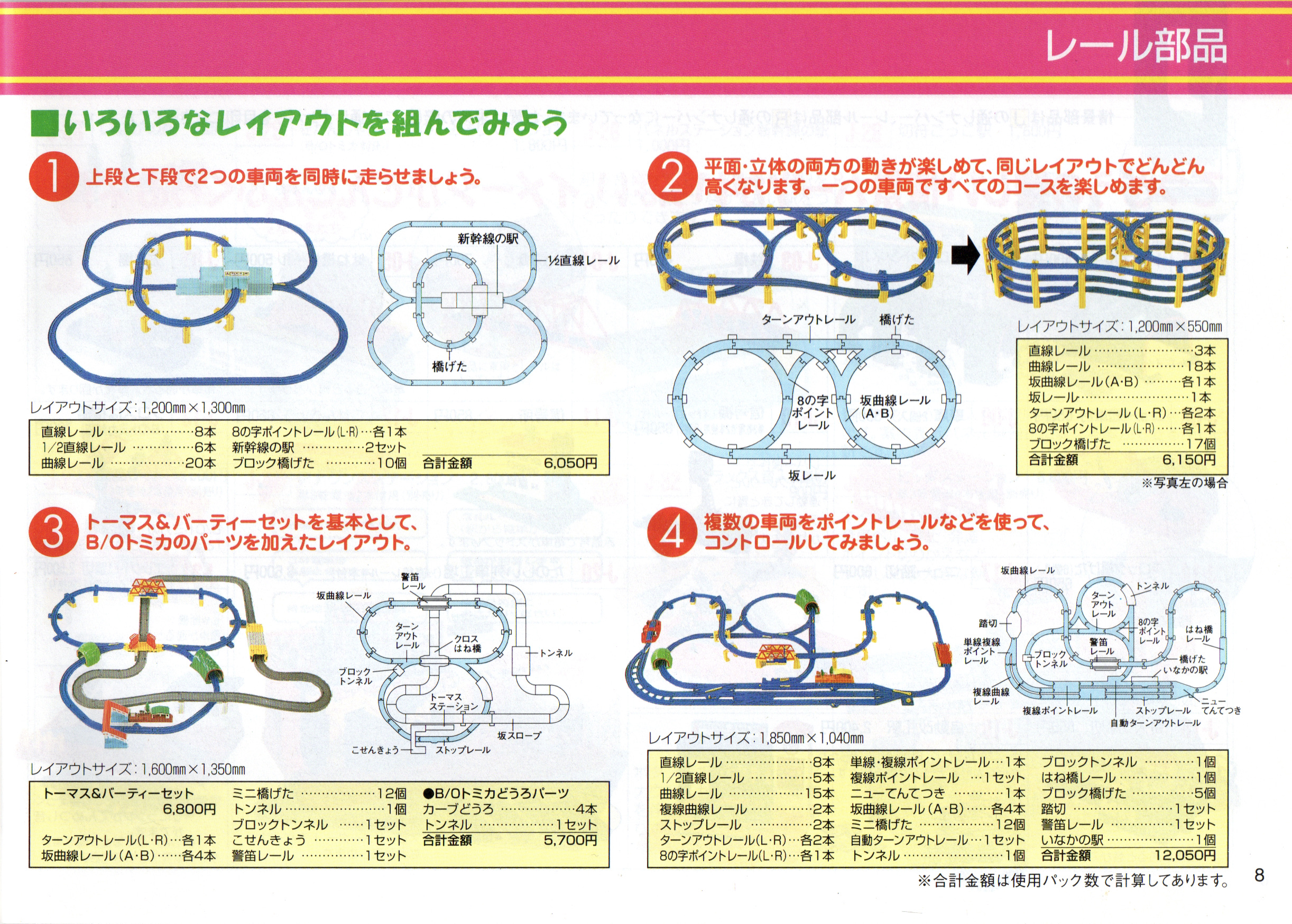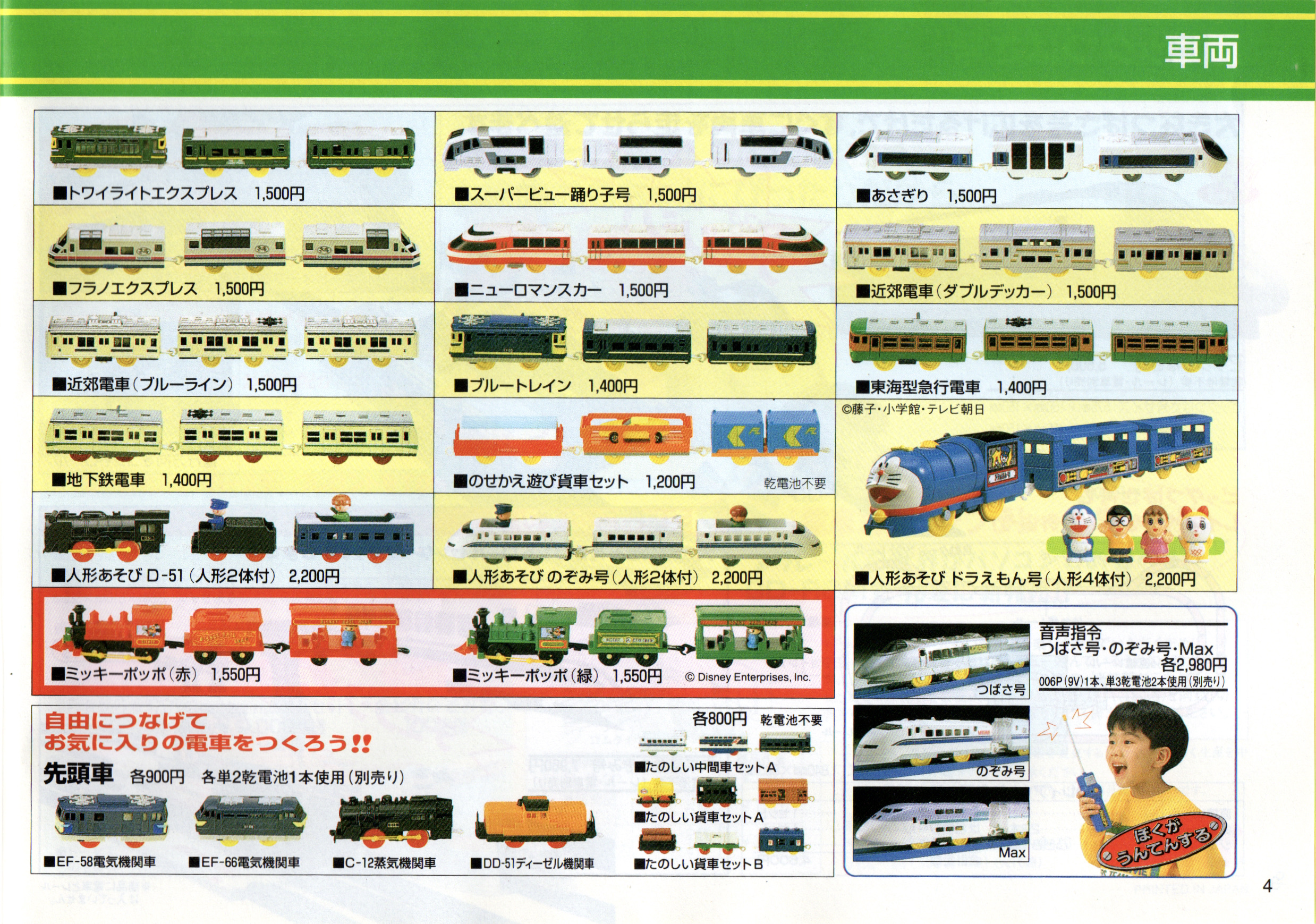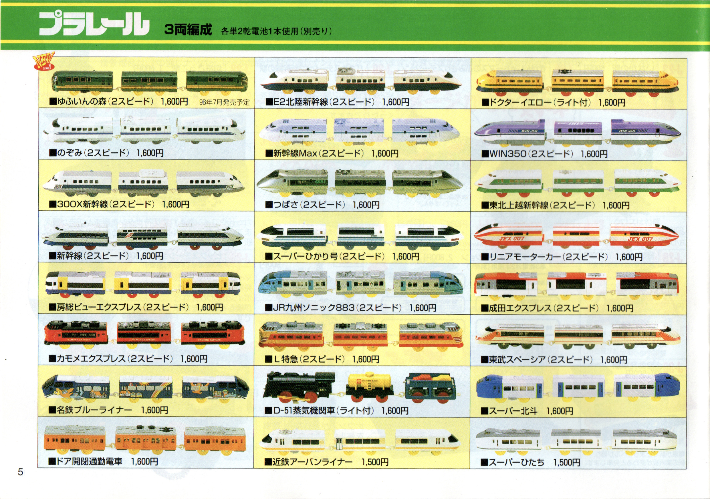 1996年版のカタログです。トミカと合同のカタログとなっています。大型情景「ビッグつばさ号」、車両単品「ゆふいんの森」などが新製品として紹介されています。