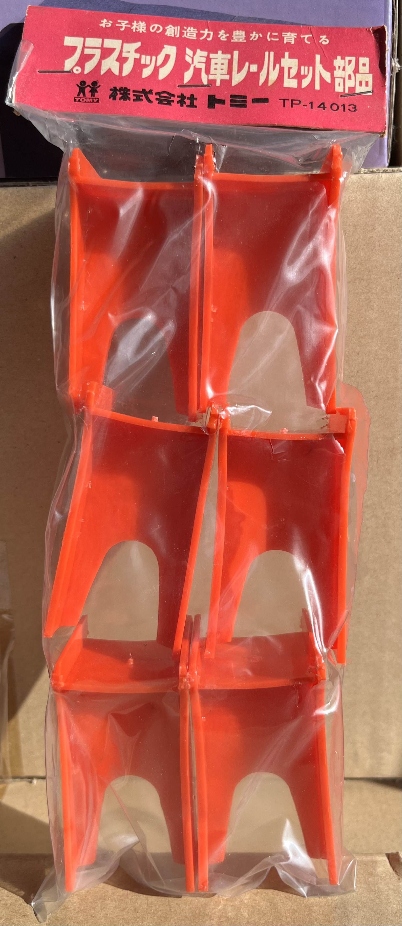 プラスチック汽車レールセット時代から発売されていた極初期の「はしげた」です。セット品で青色とオレンジ色、単品ではオレンジ色と黄色が存在していました。