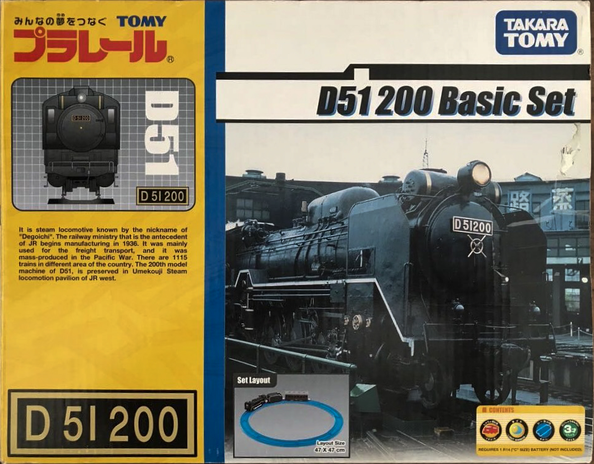 単品と同仕様のD51 200と、曲線レール8本が入った非常にシンプルなベーシックセット。香港、マレーシアなどで発売されていたようです。他に小田急ロマンスカーVSE、京成スカイライナーAE形のセットもあります。