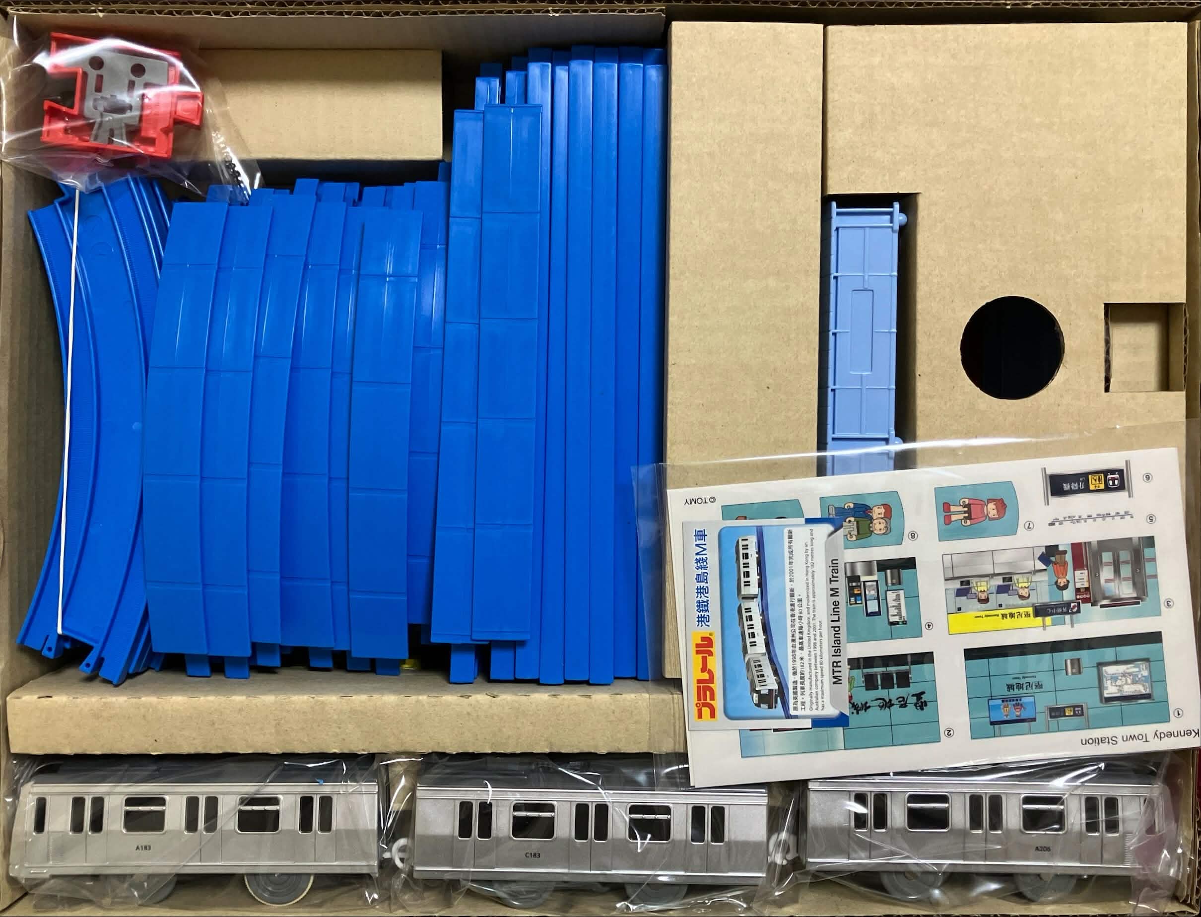 2025年9月に発売されたセット。レイアウトは「港鐵載客列車[1998-]高級套裝」と同様ですが、車庫がお馴染みのオレンジ色のものに、地下の駅は日本国内の単品に似たグレー成型のものに、切り通しレールは地下直線レールに置き換わっています。