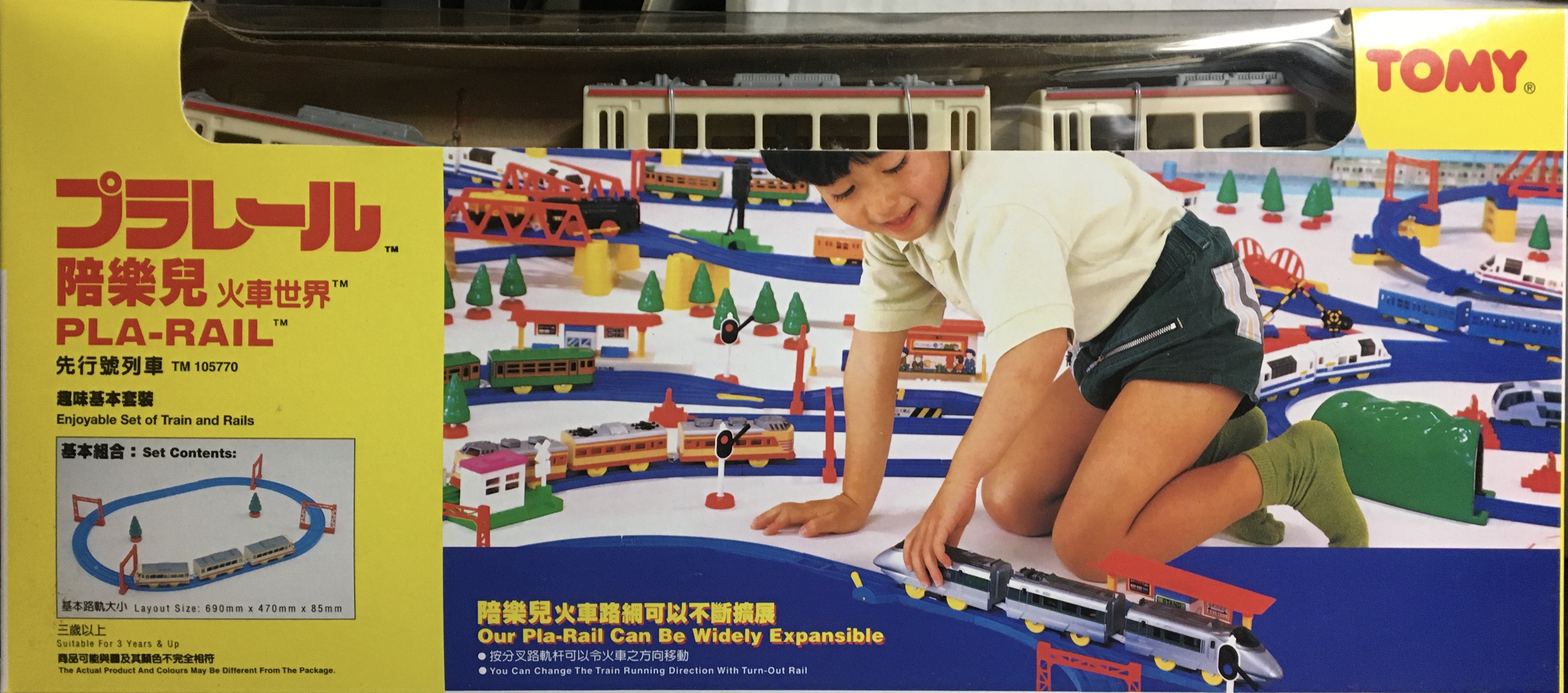 最近発見されたもの。ドイツにもプラレールが輸出されていました。レールがTOMY TRAINSと同じ紺色タイプなので、同時期の発売と考えられます。
