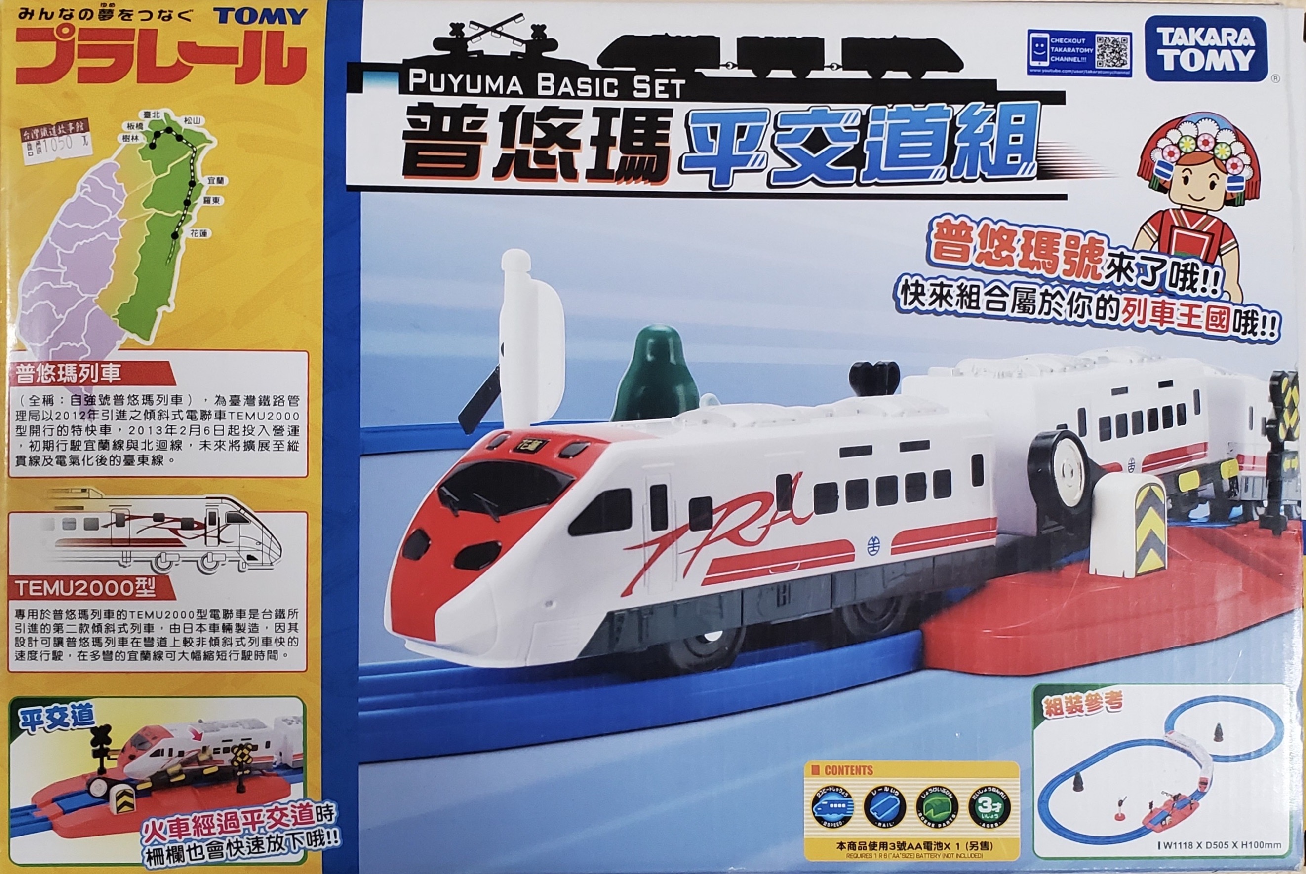 普悠瑪号の平面交差セット。レイアウトはレールセットBそのままですね。台湾の踏切は日本のものとほぼ同一なので、「ニュー踏切」がそのまま入っていても違和感がないという考えられた仕様です。