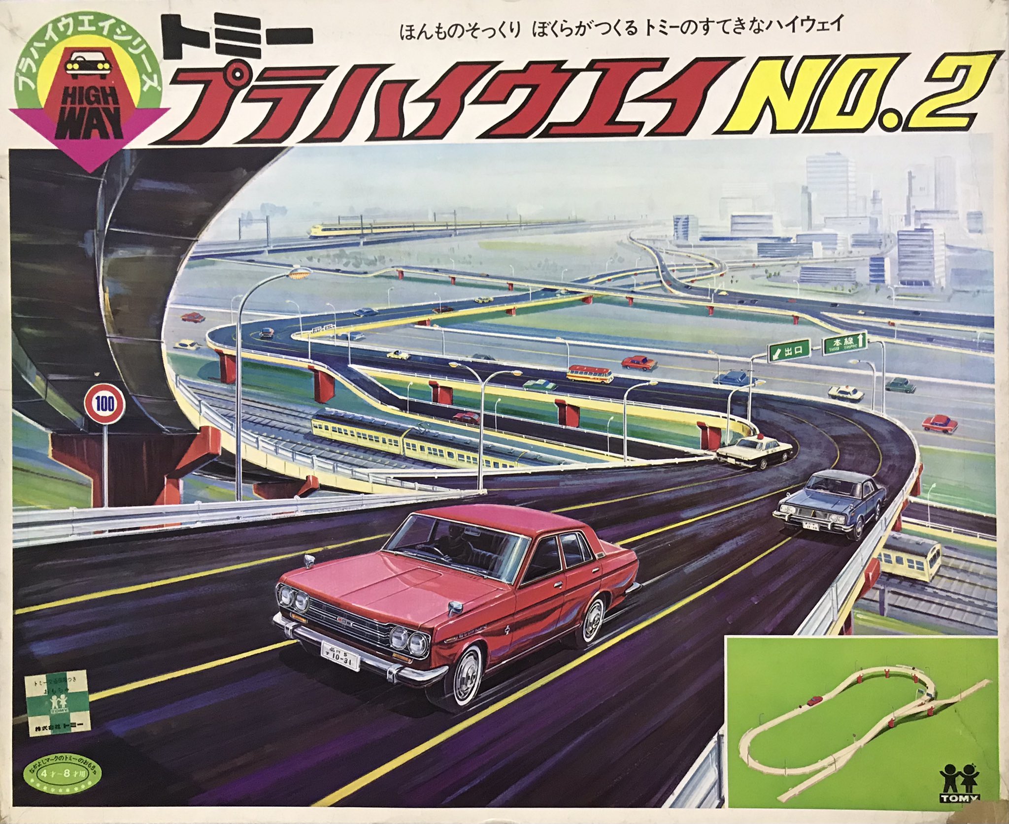 初期に発売されたセットのうちの二つ目。エンドレスにポイントが追加され、ハイウェイへの乗り入れごっこが楽しめます。