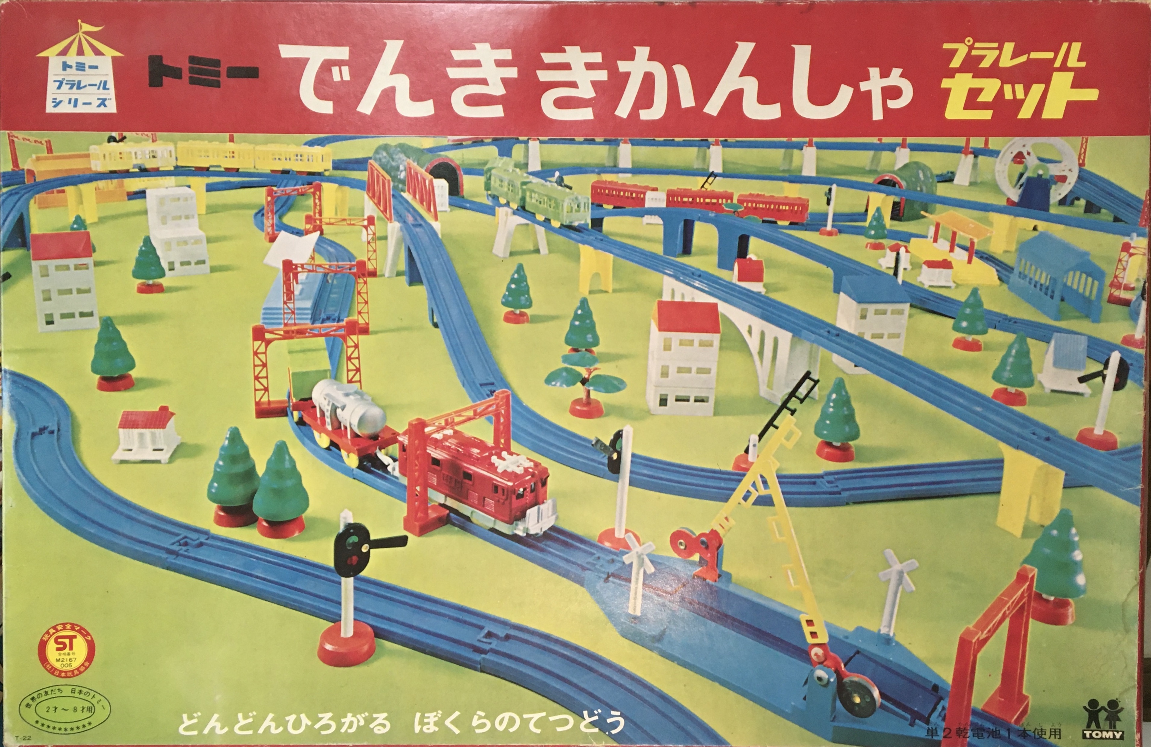 地味な存在かつ簡素なレイアウトのセットですが、実はかなりの大珍品。1970年代前半の製品としては有名な「ちんちんでんしゃ」が主題のセットです。