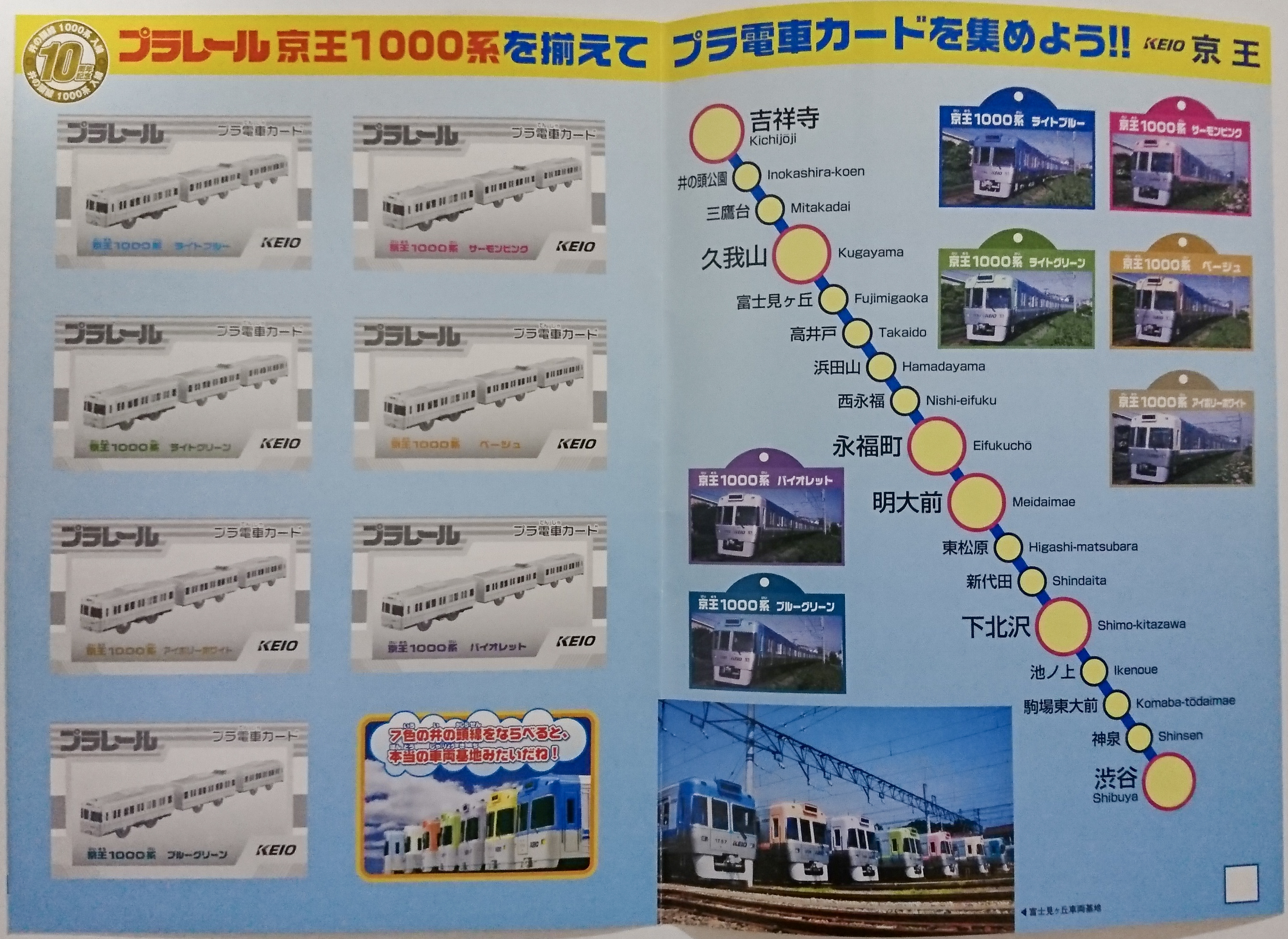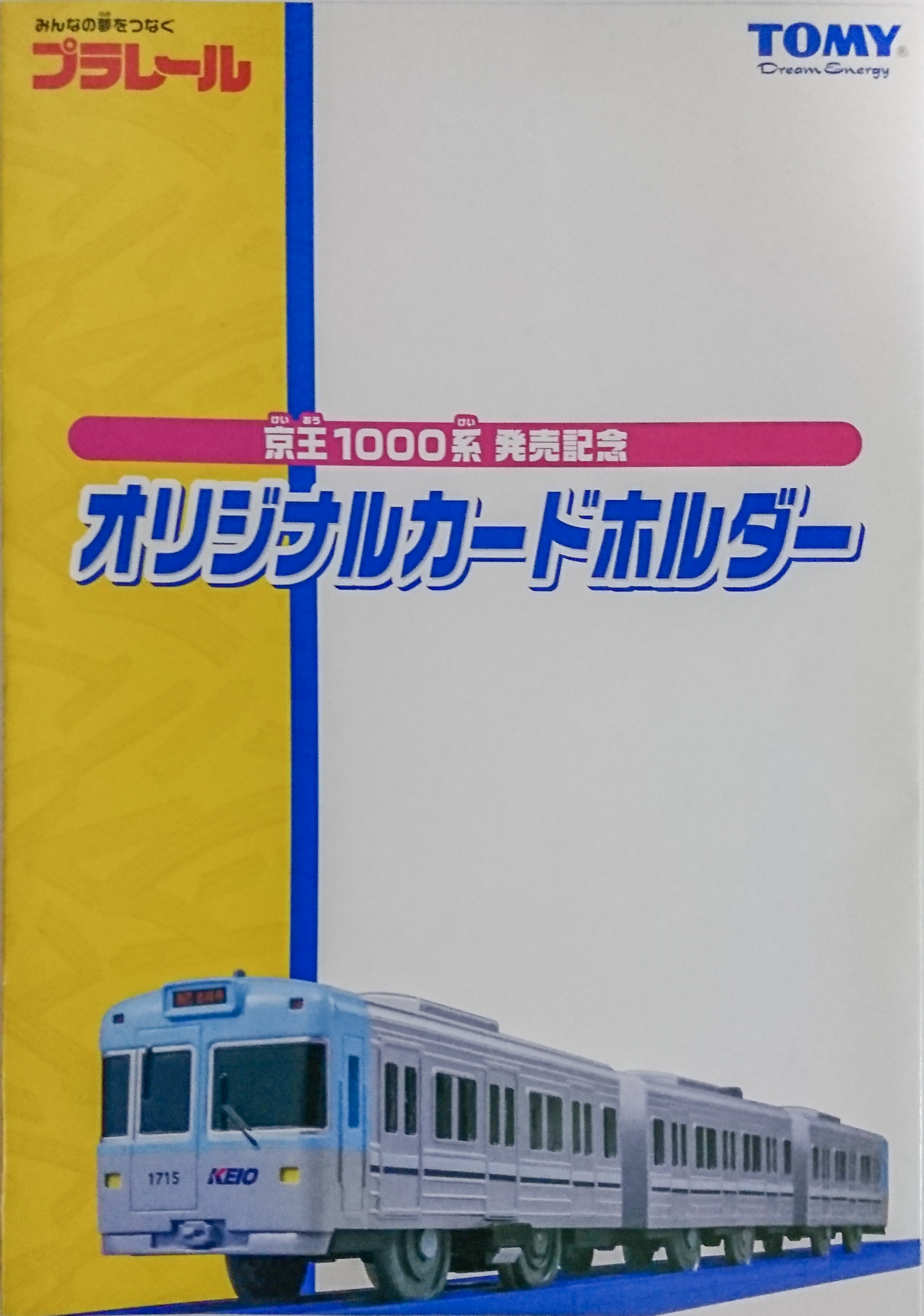 2005年11月23日に発売された「京王1000系」各色を記念して、京王れーるランドなどで配布された「プラ電車カード」のカードホルダー。入線10周年を記念したロゴが入っています。1996年1月9日にデビューした1000系、2026年で30周年を迎えました。プラレールの発売から20年、この間には2008年の20番台増備、「ベージュ」の「オレンジベージュ」への塗り替え、実車のリニューアル、絶版となっていた色のうち「スカイブルー」の再販など色々なことがありましたが、まだまだ井の頭線で活躍する姿が見られそうです。